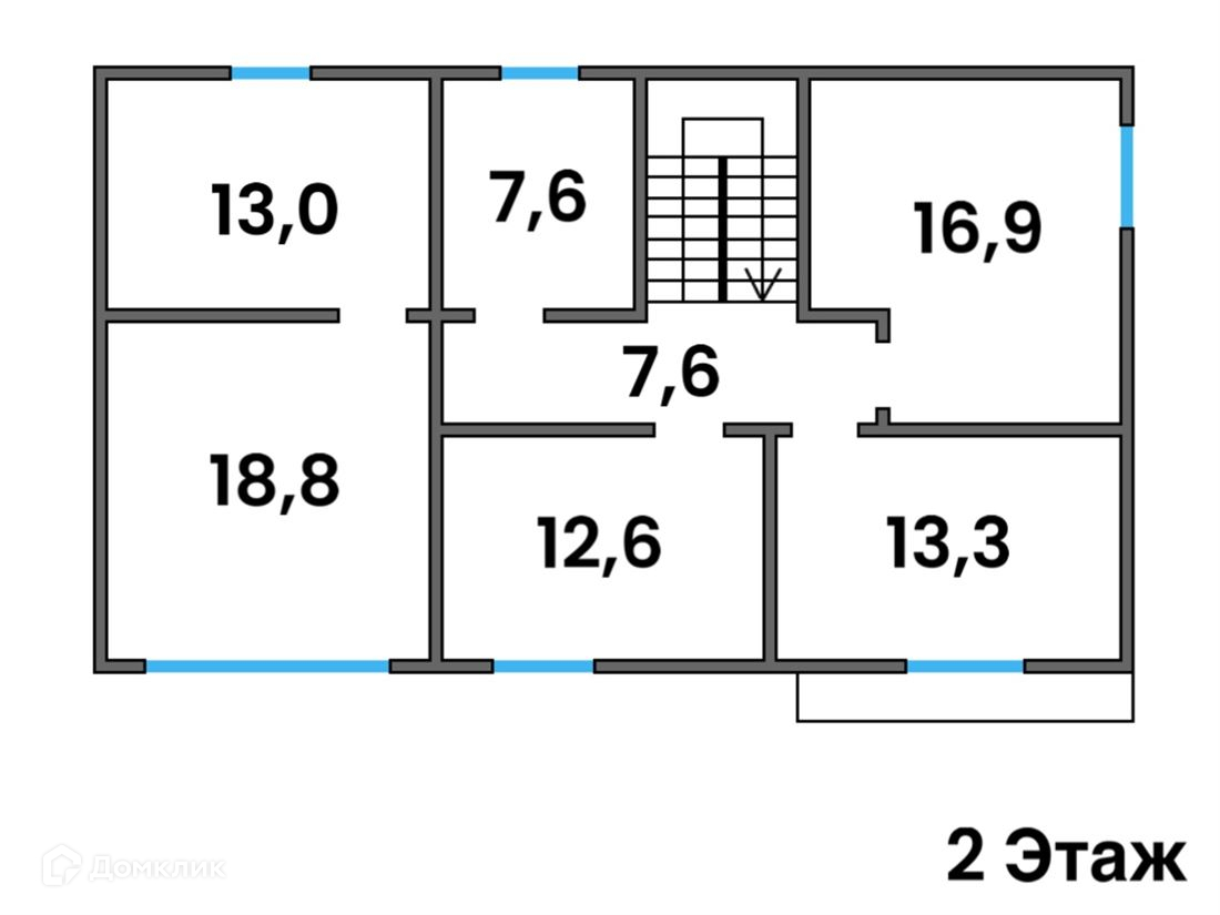 В доме изолированных  5 спальных комнат, из них 1 на первом этаже. Все центральные коммуникации подключены и  разведены по  дому.