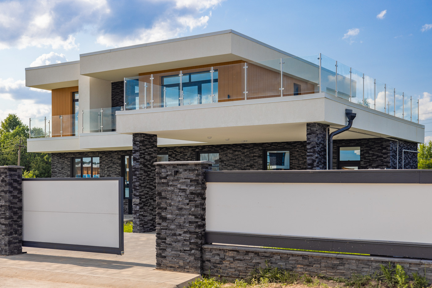 Единый архитектурный код поселка в современном стиле с широкими улицами и бульварами.