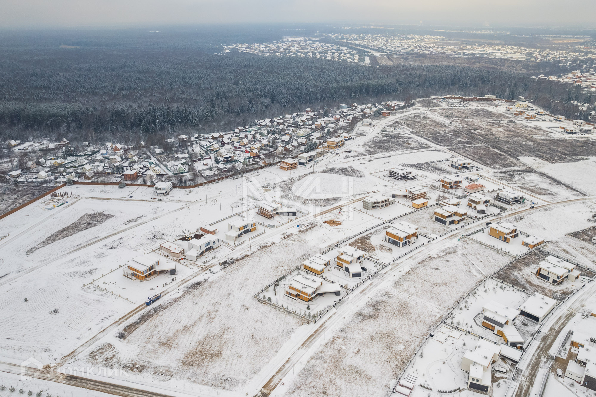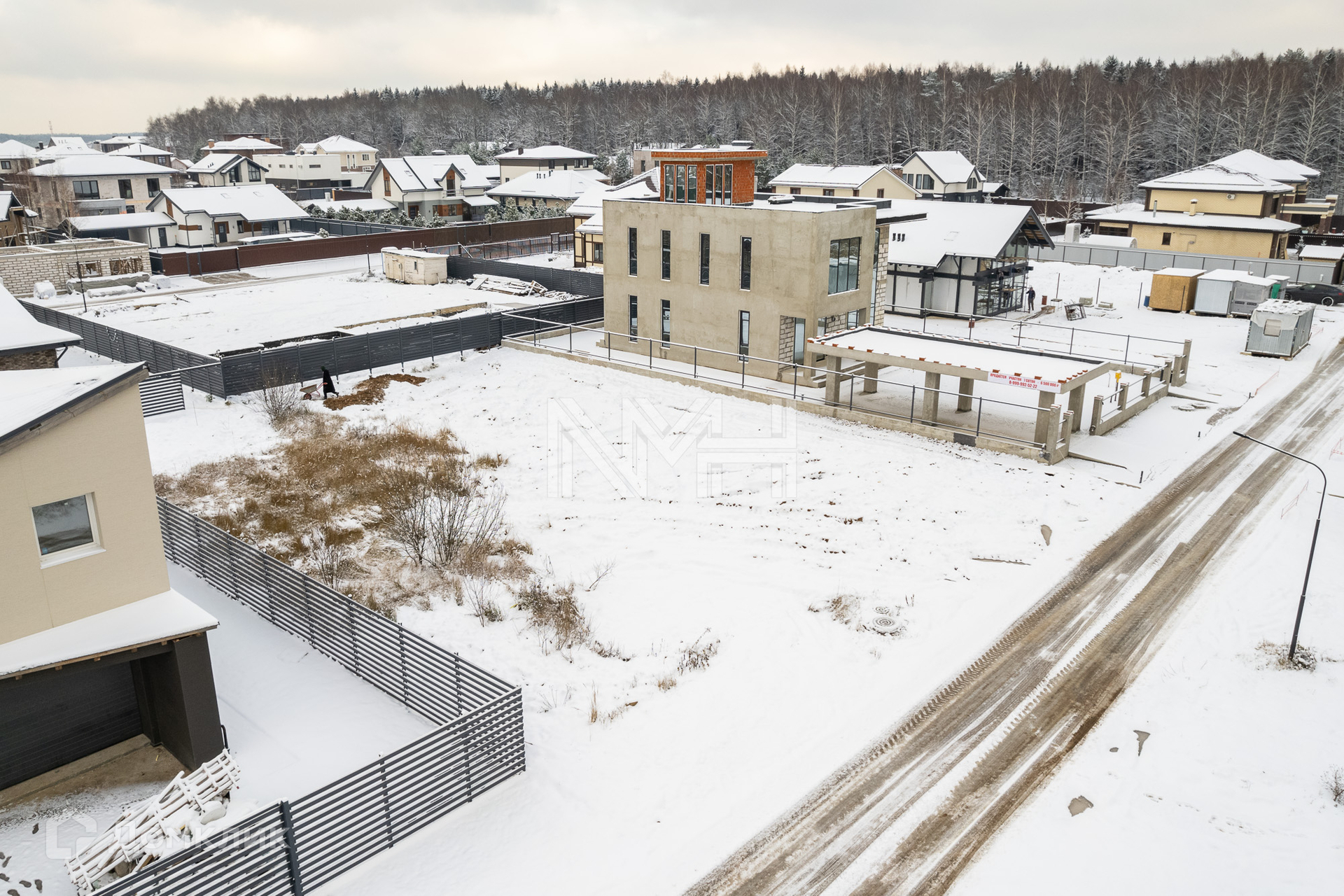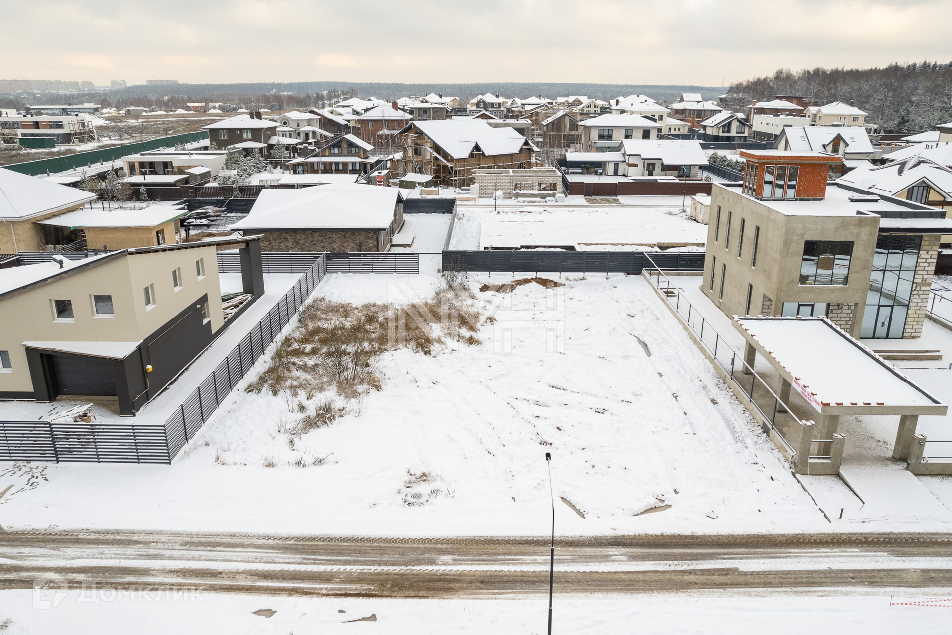 В поселке – асфальтированные дороги, уличное освещение, есть спортивная и детские площадки. В пешей доступности – лесной массив. Въезд через КПП.