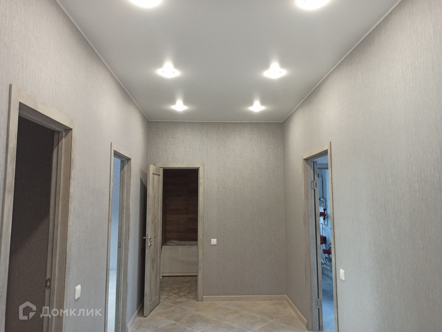Планировка на фото: три комнаты, гардеробная, кухня-гостиная, боллерная, санузел, коридор.