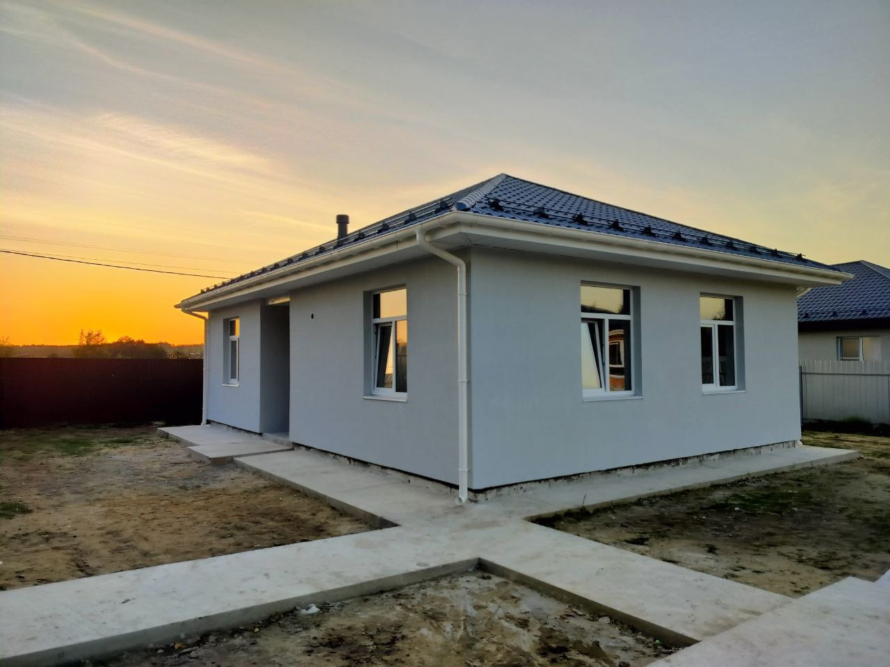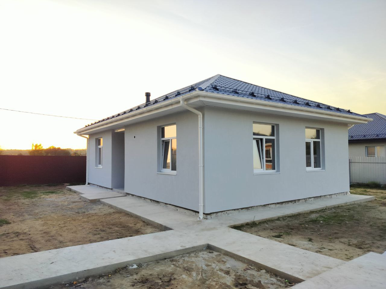 Предлагаем Вашему вниманию одноэтажный новый дом площадью 83,6 квадратных метра с тремя изолированными комнатами и просторной кухней-гостиной.