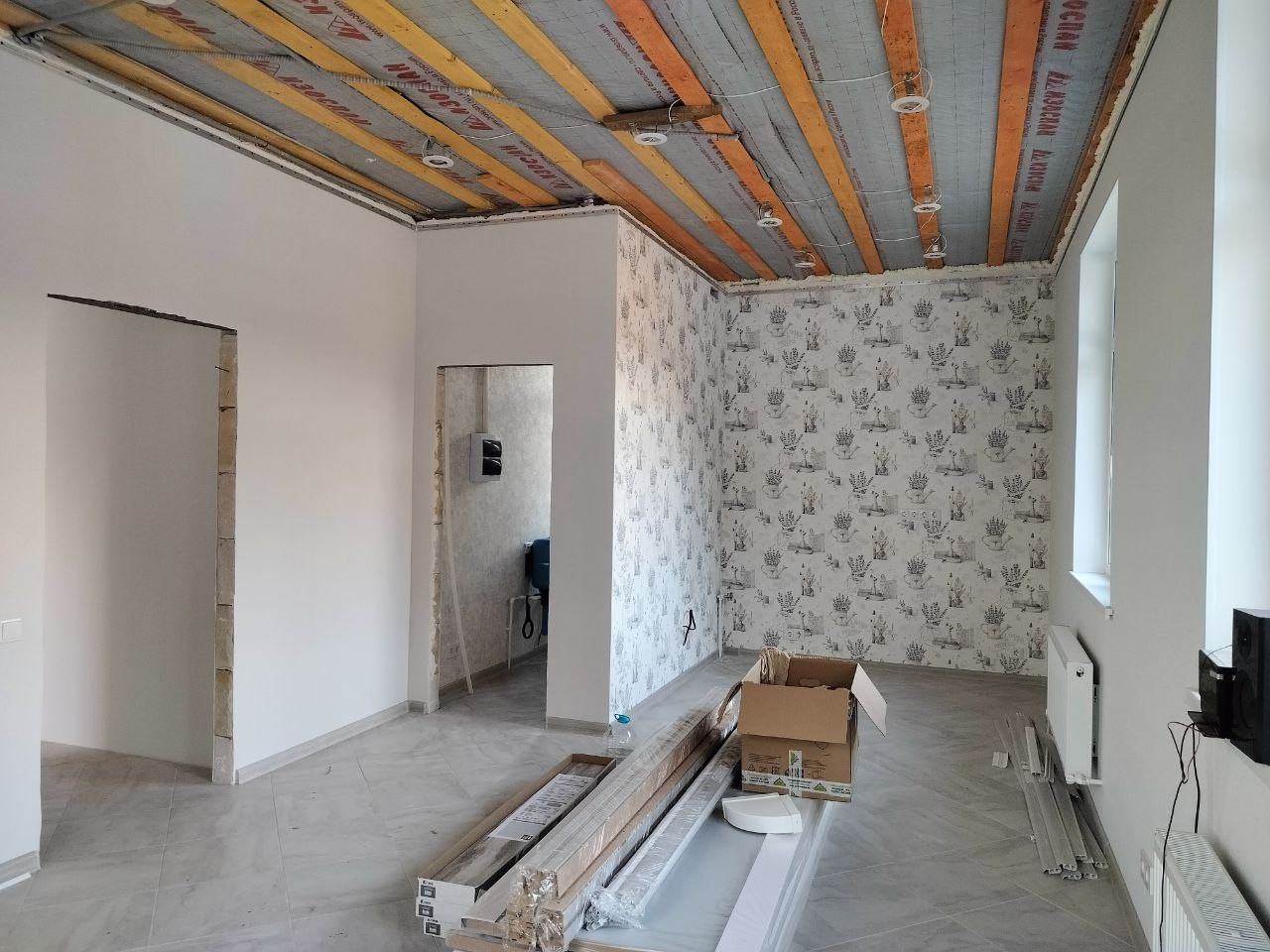 - Полы: теплые водяные (стяжка, будет уложен керамогранит).