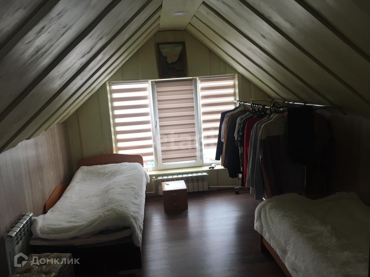 На втором этаже - мансарде находится просторная спальня.