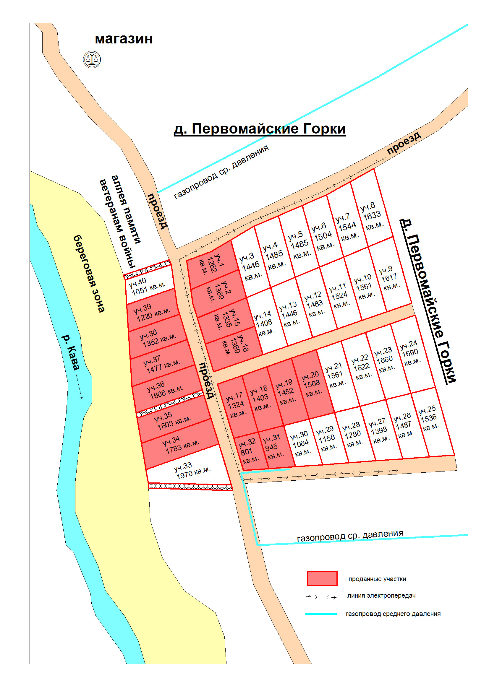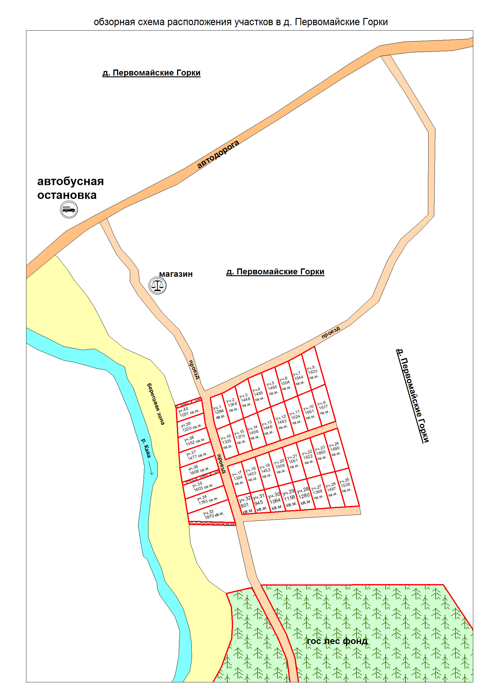 Участки на берегу реки Кава. ИЖС в д. Первомайские Горки на ул. Набережная. Компактная небольшая территория из 40 участков. От 10 до 50 соток (при покупке соседних участков).