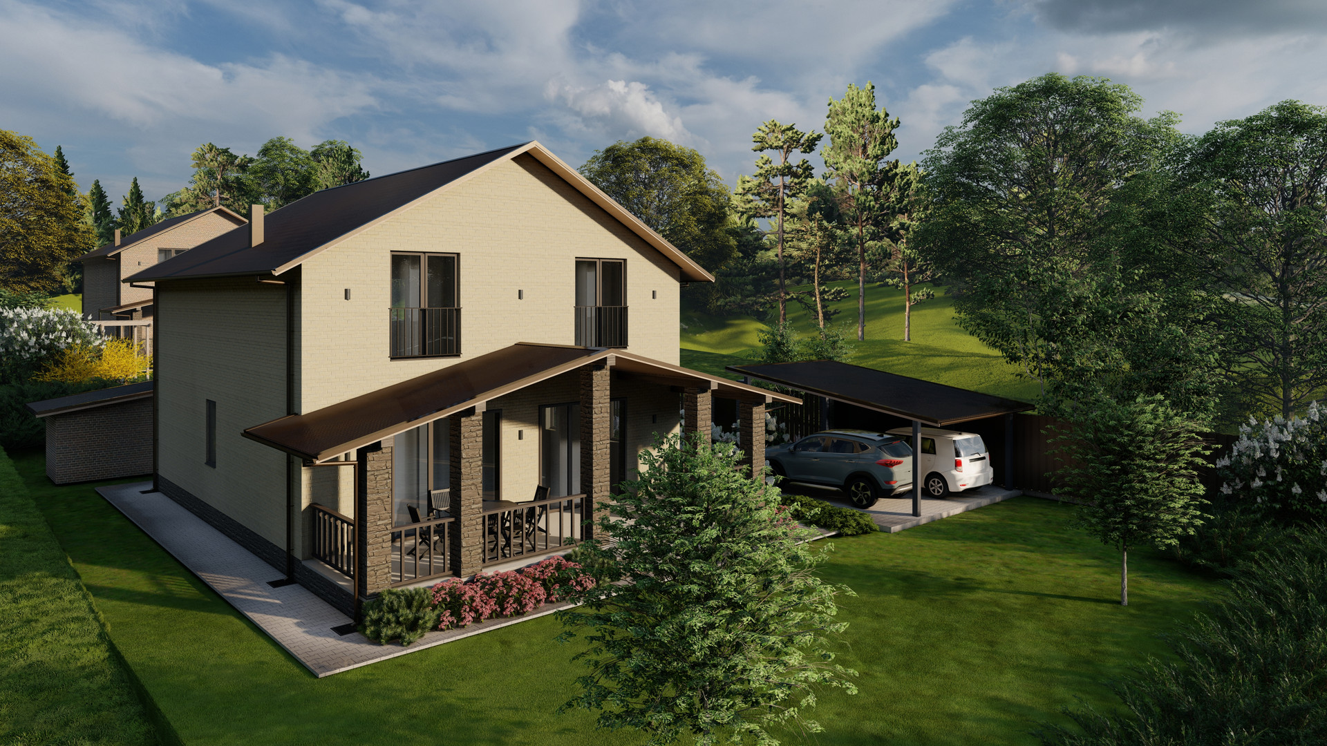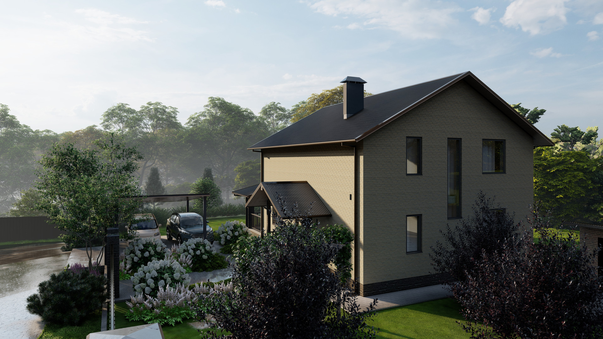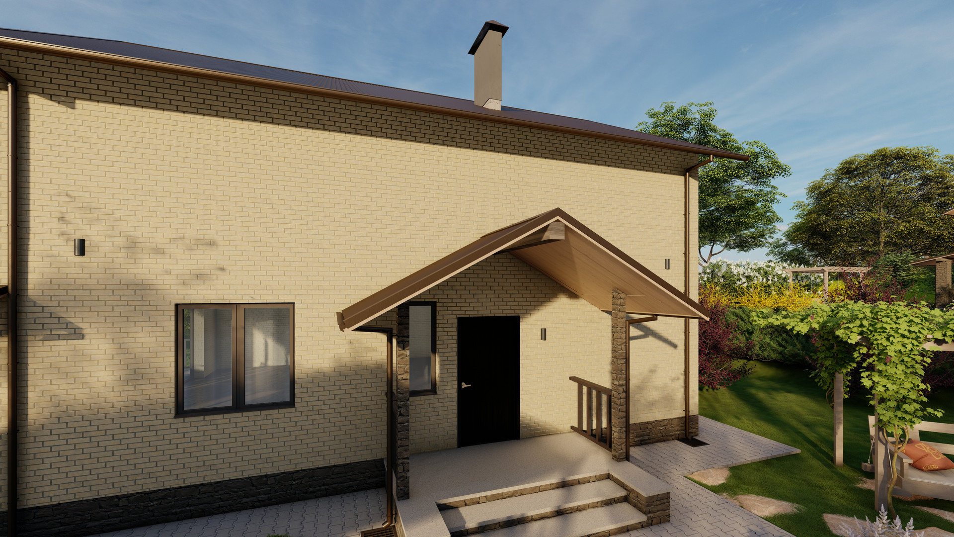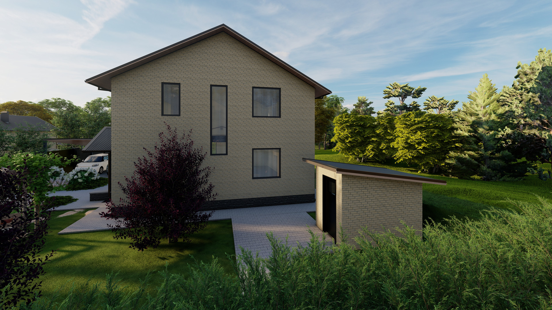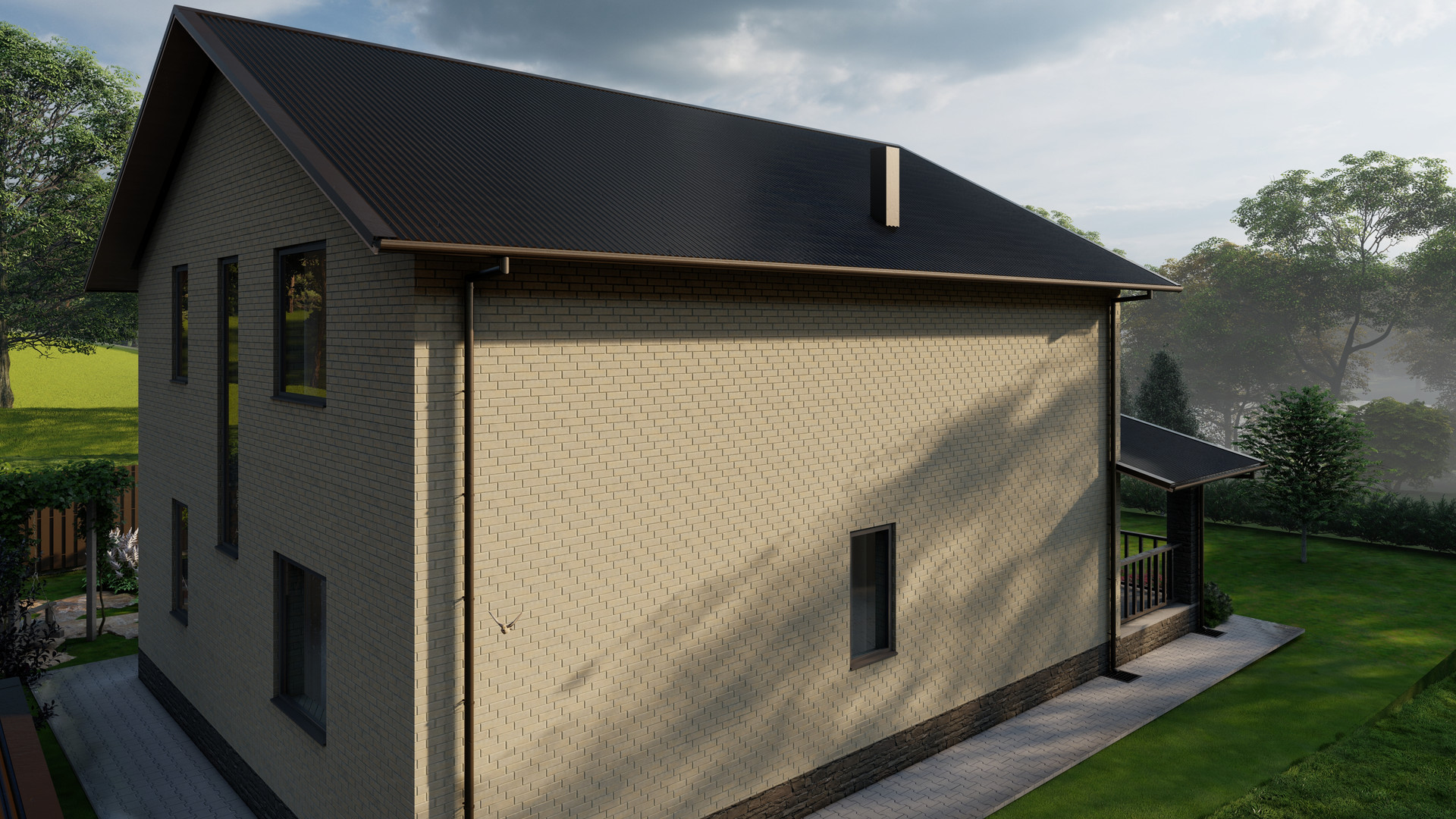 • Материал стен: двойной щелевой кирпич + облицовочный кирпич