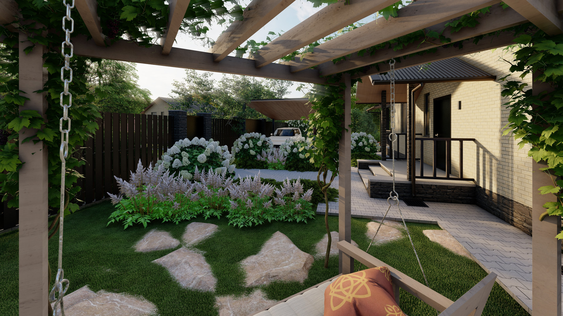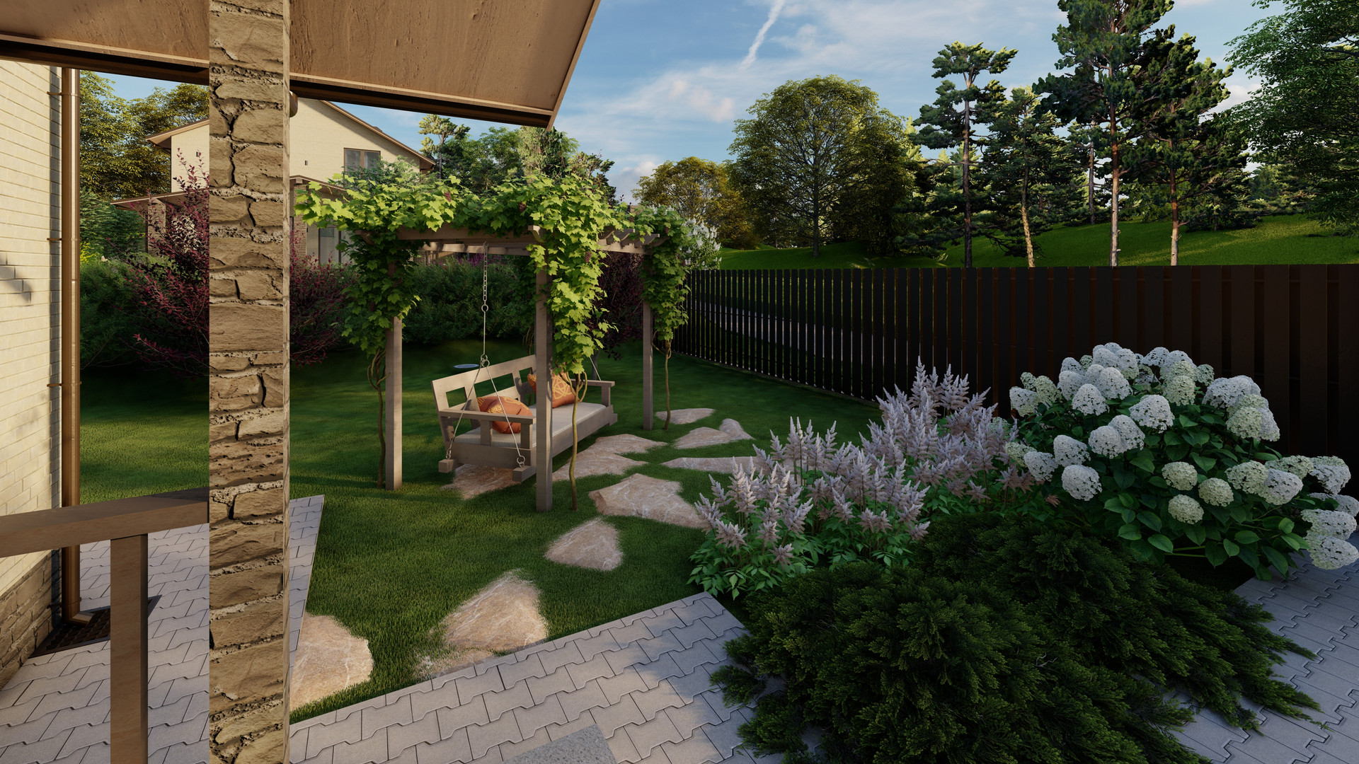 • Земельный участок (7 соток) с ландшафтным дизайном, высаженными из питомника растениями, газоном