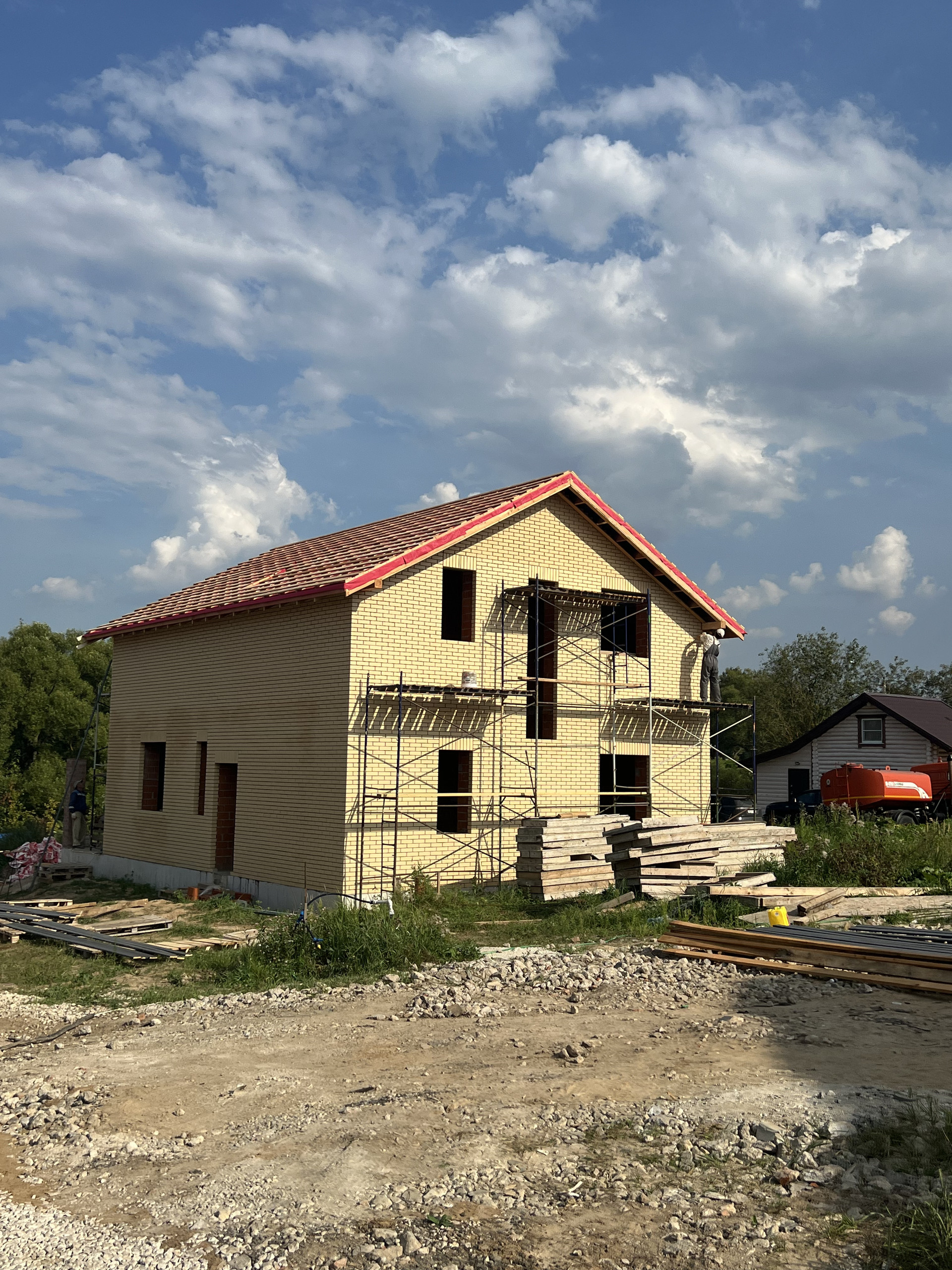 В настоящий период ведутся работы по остеклению дома и чернового ремонта, а также по благоустройству земельного участка. Будет создана въездная группа. При желании покупателя возможно установление навеса для авто. Окончание работ запланировано на конец октября 2024 года.