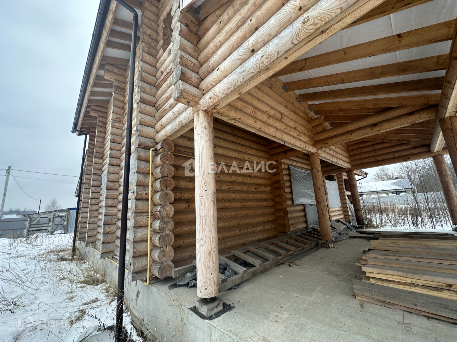 - Дом - оцилиндрованное бревно 260 мм и обработано огнеБио