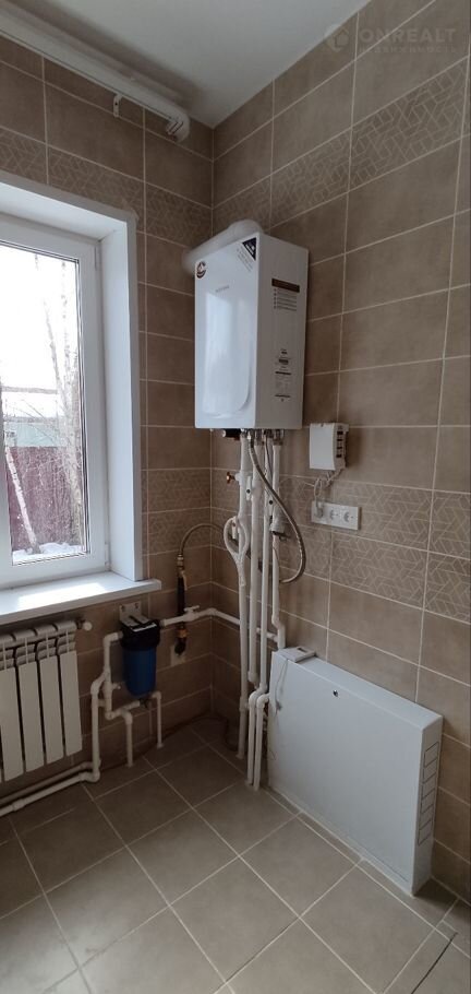 Все коммуникации заведены в дом и подключены: магистральный газ, электричество 15 кВт, вода - скважина, канализация - септик. На всем этаже проложен теплый пол.