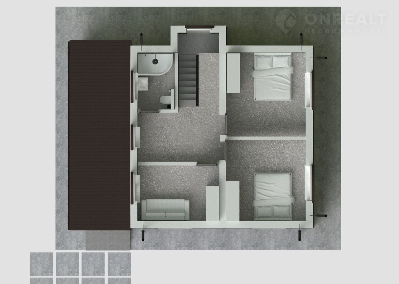 2 этаж: тpи спальни, cовмeщенный санузeл (ванная комната с большим окном).