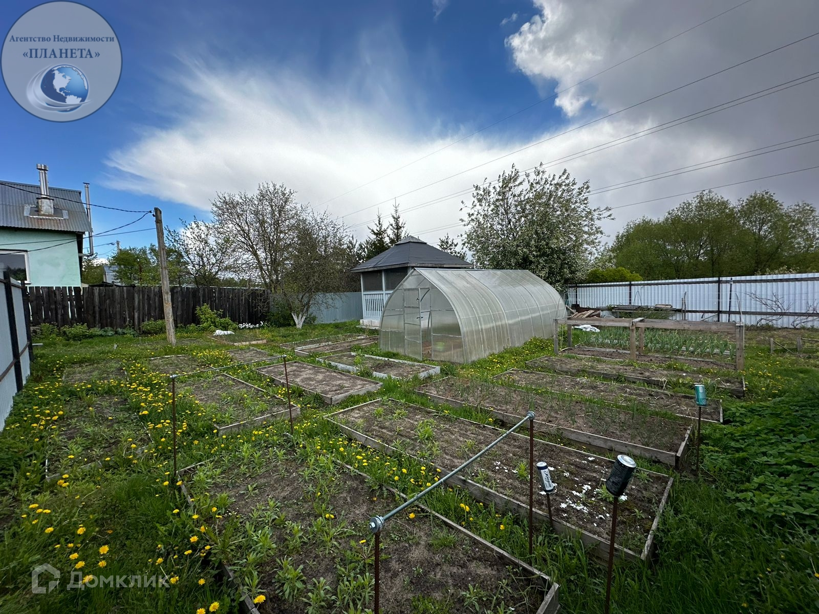 На участке есть беседка, теплица. Посажены плодородные деревья и расстения.