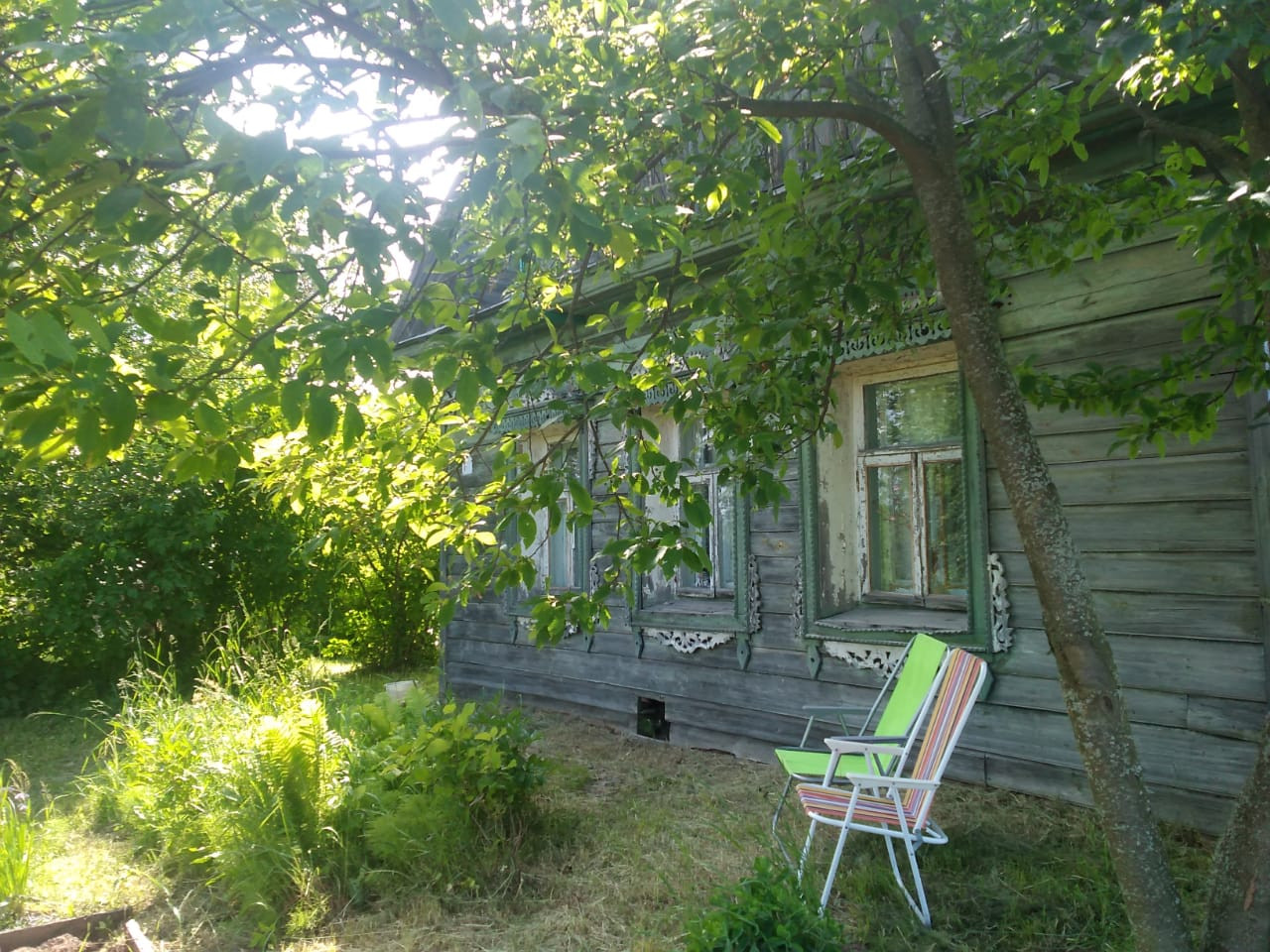 Много деревьев (черёмухи, липы, берёзы, рябины, сирень, яблоня, смородина, крыжовник).