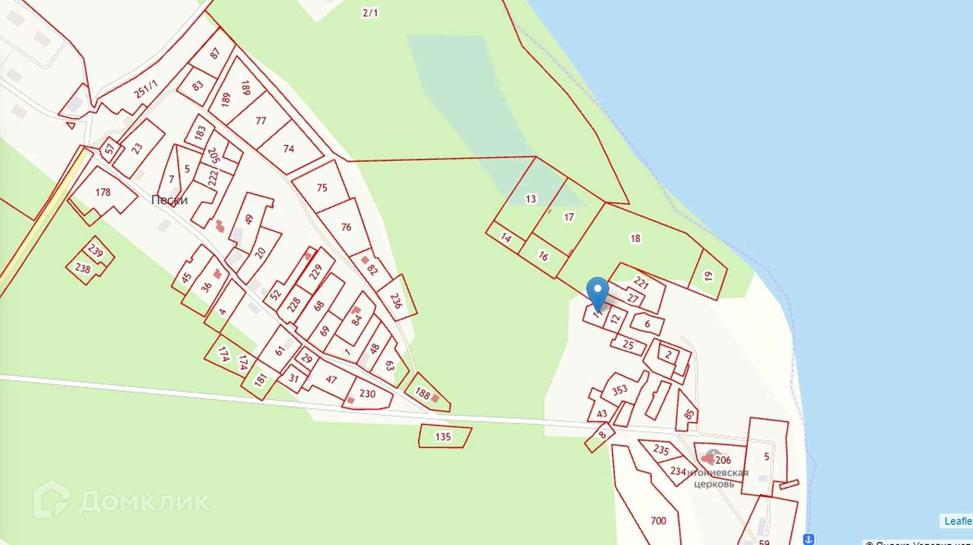 Участок находится практически на берегу озера, рядом лес, церковь. Место очень живописное и красивое. Данное месторасположение прекрасно подходит для постройки загородного дома и отдыха вдали от шумного города. Автобусная остановка Пески расположена в 5 км от участка. В деревне есть магазин. Также на берегу озера расположена база отдыха. Номер в базе: 215178 .
