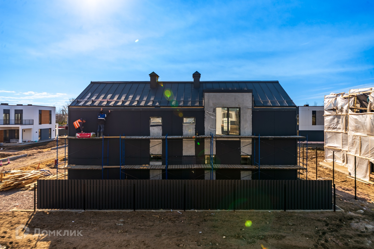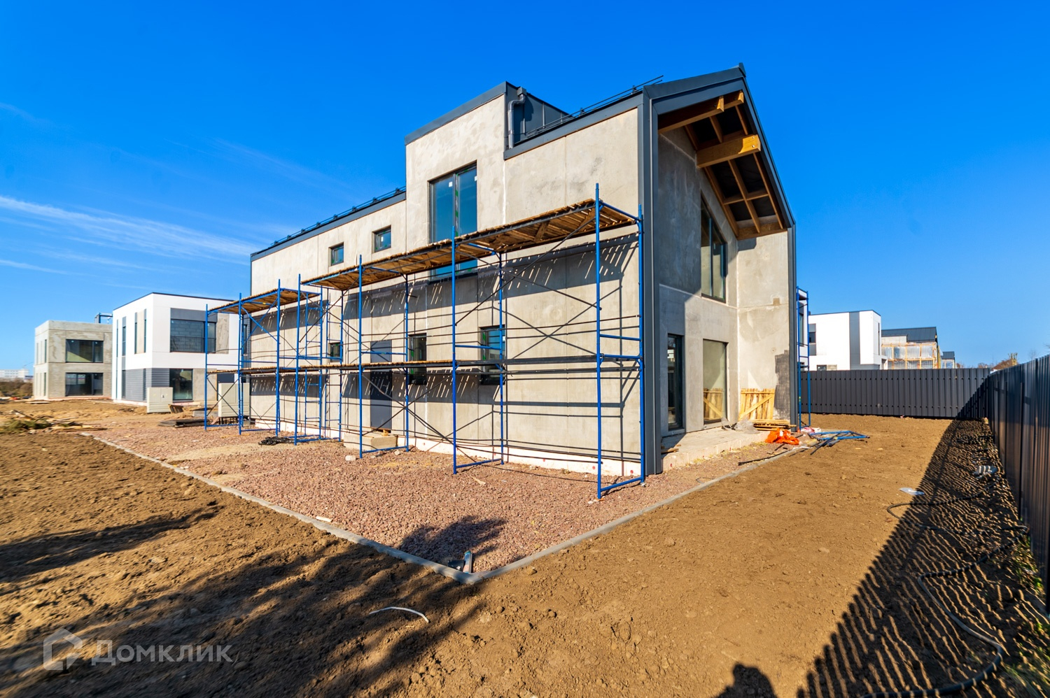 Дом спроектирован и построен в едином концептуальном стиле всего поселка. Проект представляет собой комплекс индивидуальных жилых домов с террасами, своими парковками и собственными небольшими придомовыми территориями. Дома возводятся по финской технологии.