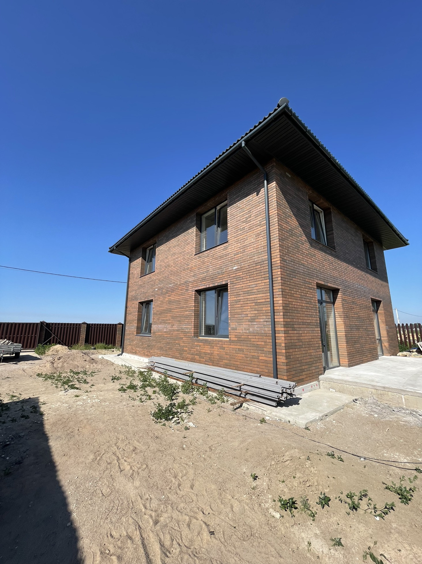 Фундамент монолитная железобетонная плита 350мм, межэтажное перекрытие: монолитная железобетонная плита, стены газобетон D500-375мм+облицовочный кирпич , сделана железобетонная лестница на второй этаж. Кровля- натуральная черепица. Коммуникации: скважина 87м, станция биотчистки, дренаж вокруг дома, ливневая система отвода дождевой воды с кровли. Парковка под автомобиль выполнена из железобетонной плиты 11х6 метров. Газ по границы участка, электричество 15кВт заведено в котельную( возможно увеличить до 30кВт). В доме установлены большие окна с двухкамерными стеклопакетами: на первом этаже в кухне-гостиной и спальне панорамное остекление с выходом на террасу. Отопление -тёплые полы на первом этаже и на втором+ тёплый пол в санузлах и на балконе и террасе. Дом сдаётся в предчистовой отделке и полностью оборудованной котельной.
