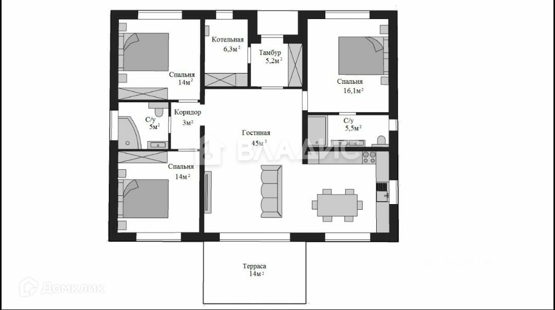 Площадь дома 118м²