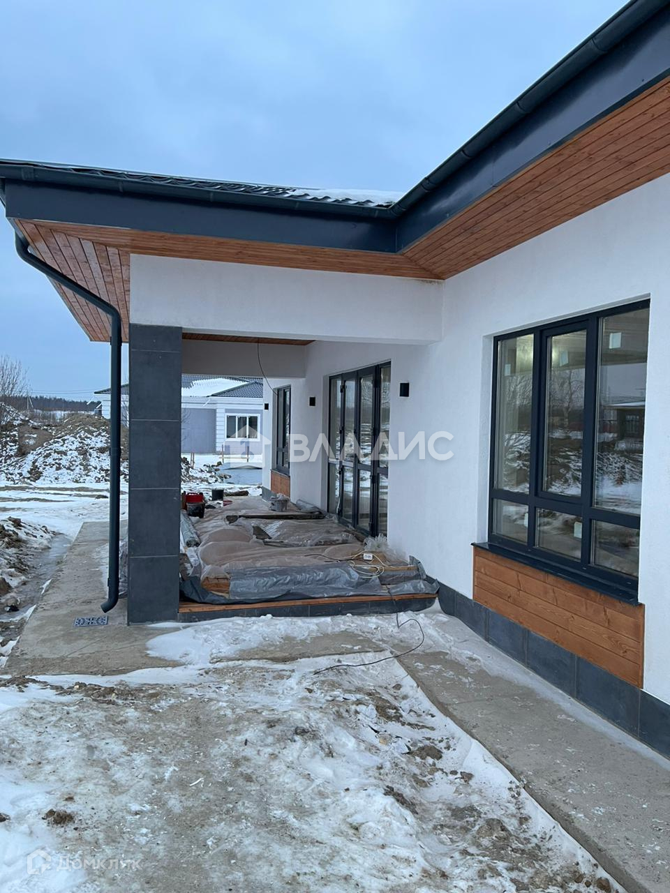 ▸ Фундамент- Жб монолитная плита 300 с ребрами жесткости 150мм, электроподогрев крыльца от наледи и снега