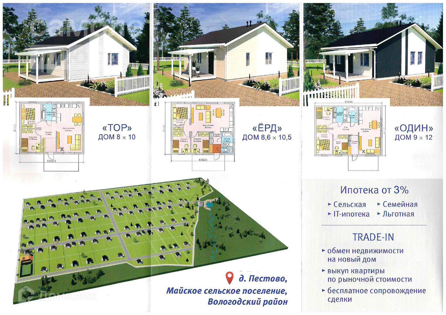 Действует уникальная система TRADE IN – возьмем Вашу недвижимость в зачёт стоимости дома (например, в счёт первоначального взноса при оформлении ипотеки).