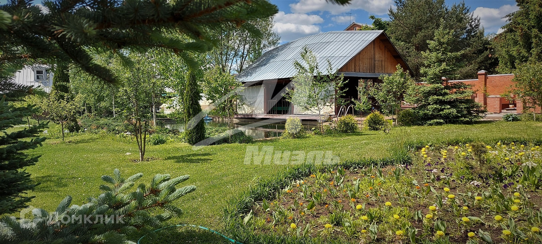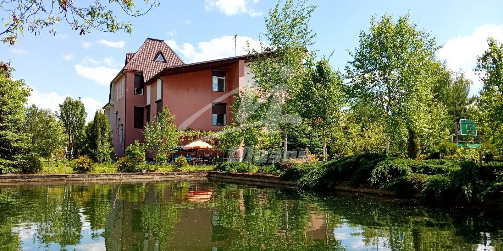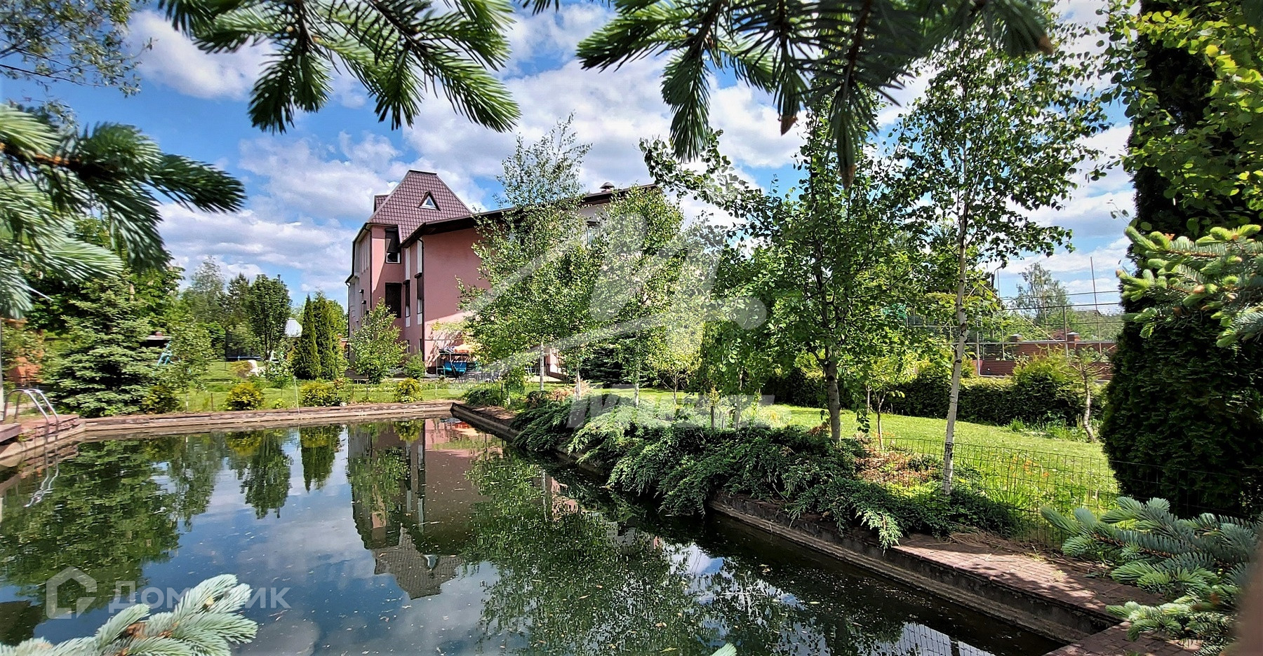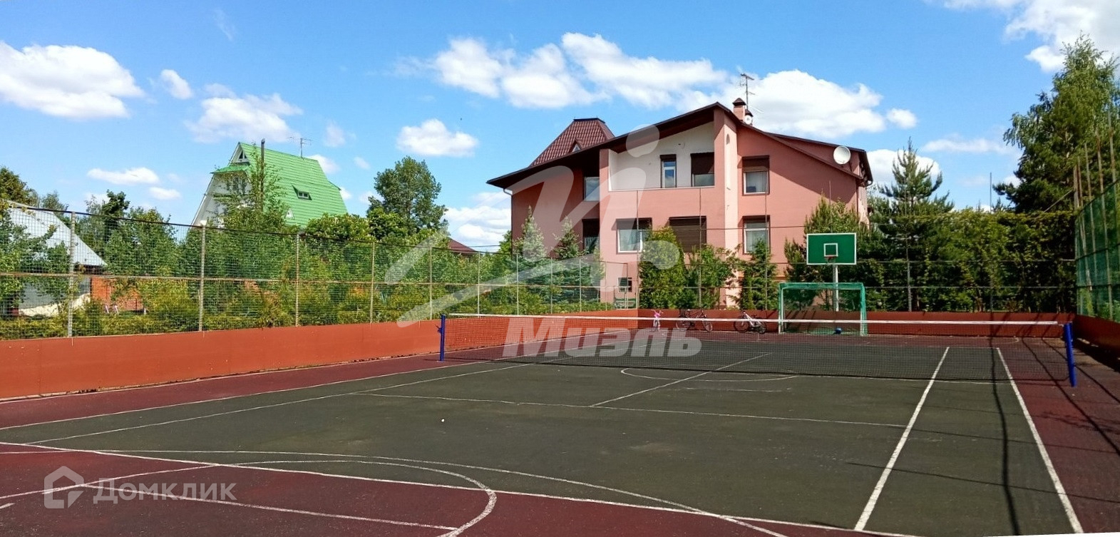 Участок правильной прямоугольной формы, по периметру огорожен 3-х метровым кирпичным забором. На территории участка выстроена универсальная спортивная площадка с мягким травмобезопасным покрытием для игр в большой теннис, баскетбол и мини футбол. Так же на участке расположены: дом для персонала и охраны, рубленная баня, живописный пруд, зона для барбекю с мангалом и вертелом, детская площадка и другие места для комфортного отдыха. На участке выполнен дренаж, разбит великолепный многолетний газон, высажены в большом многообразии плодовые, декоративные деревья, редкие сорта хвойных пород, кустарники и цветы.