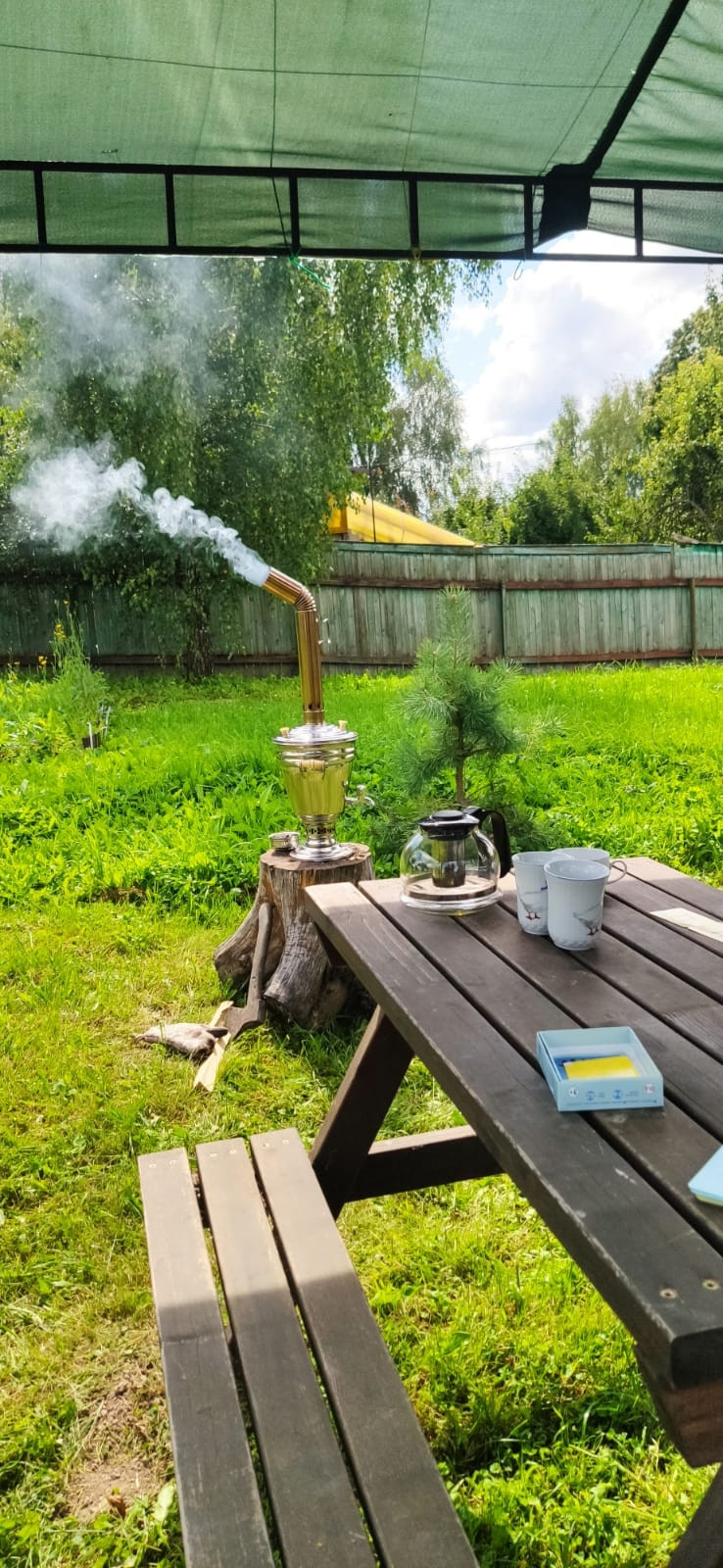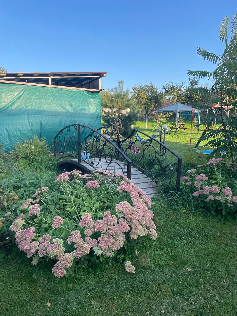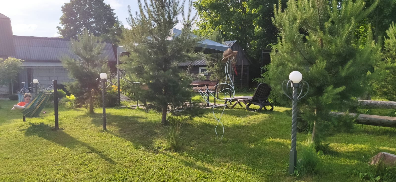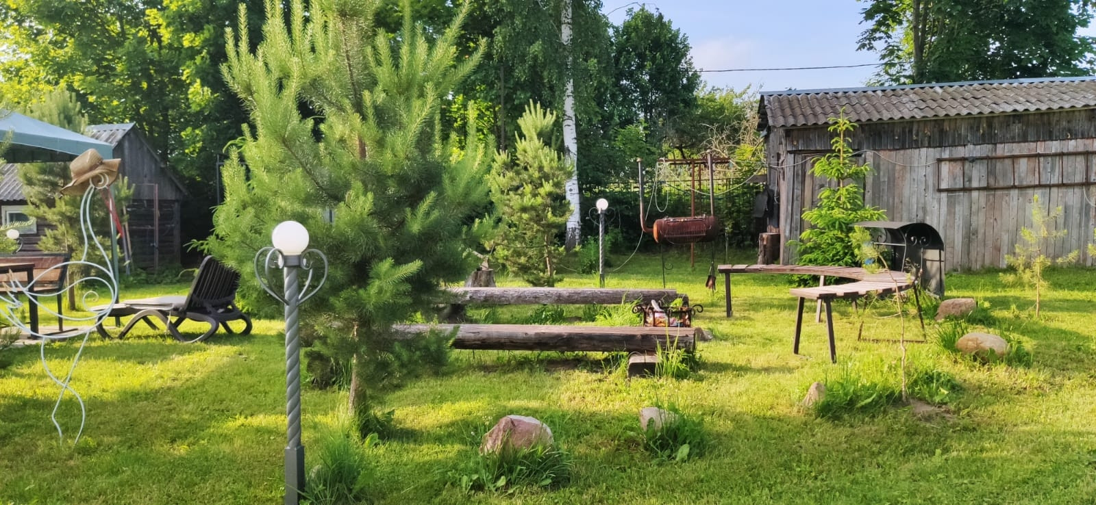 35 соток участок: на нём 2 гаража под ПРАКТИЧЕСКИ ЛЮБОЙ МУЖСКОЙ ВИД БИЗНЕСА-  380 В, 120 м. кв., две хозяйственные постройки, просторная зона отдыха для большой компании, мангалы, уличный камин, место для пляжного волейбола. 2 навеса, Детский комплекс, пруд с рыбой. Душ и туалет(унитаз),  раковина на улице, закрытые- вода выведена из дома с возможностью выставлять любую температуру воды! Моемся в нём с мая по сентябрь.+ санузел также есть в доме! На участке растут опята!