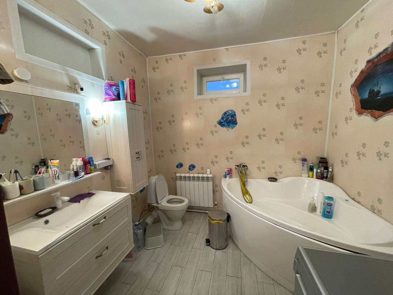 В доме есть все: газ, свет- 380 В, вода очень хорошая, кристальная по сравнению с городом! (скважина+центральная) , стационарный телефон,скоростной интернет, кондиционер.