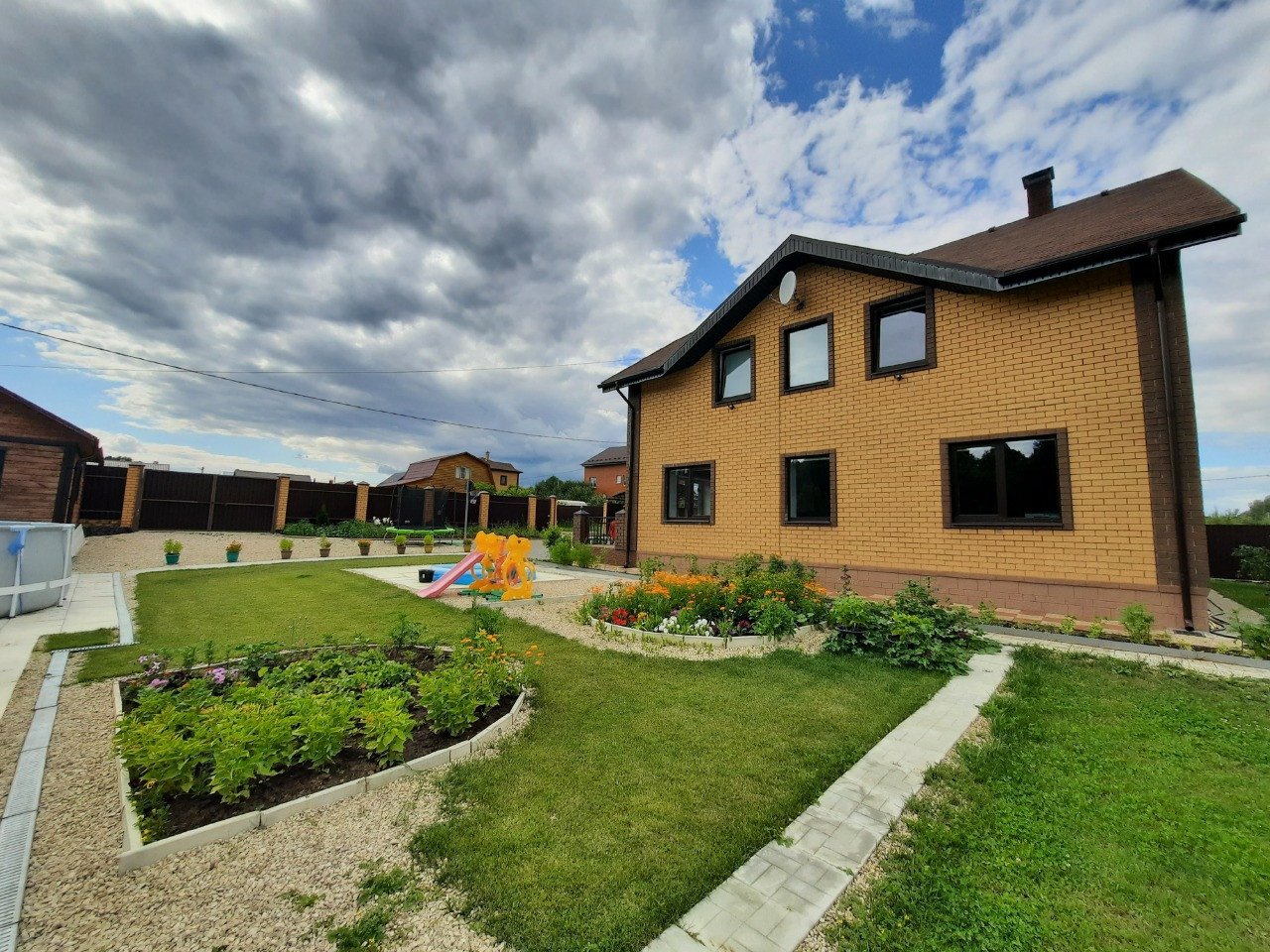 По самому дому и постройке вопросов быть не может - капитальный дом на капитальном фундаменте, облицован кирпичом, утеплён где нужно, отмостка, водостоки, дренаж на территории и прочее. ⠀