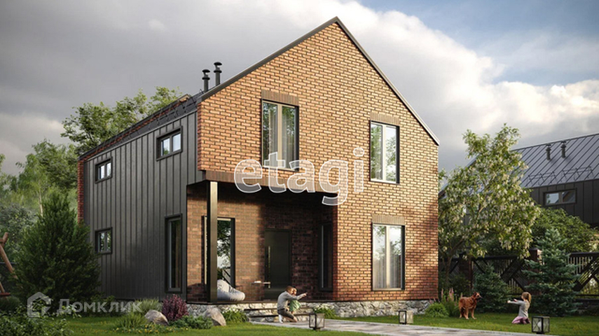 Коттедж в стиле барнхаус, площадью 142.5 кв.м, с 4-мя спальнями и двумя террасами. Фасад отделан натуральными материалами. Дом продается без отделки, высота потолков 3 метра и увеличенные окна. При желании можно заказать отделку вайт бокс или чистовую отделку.