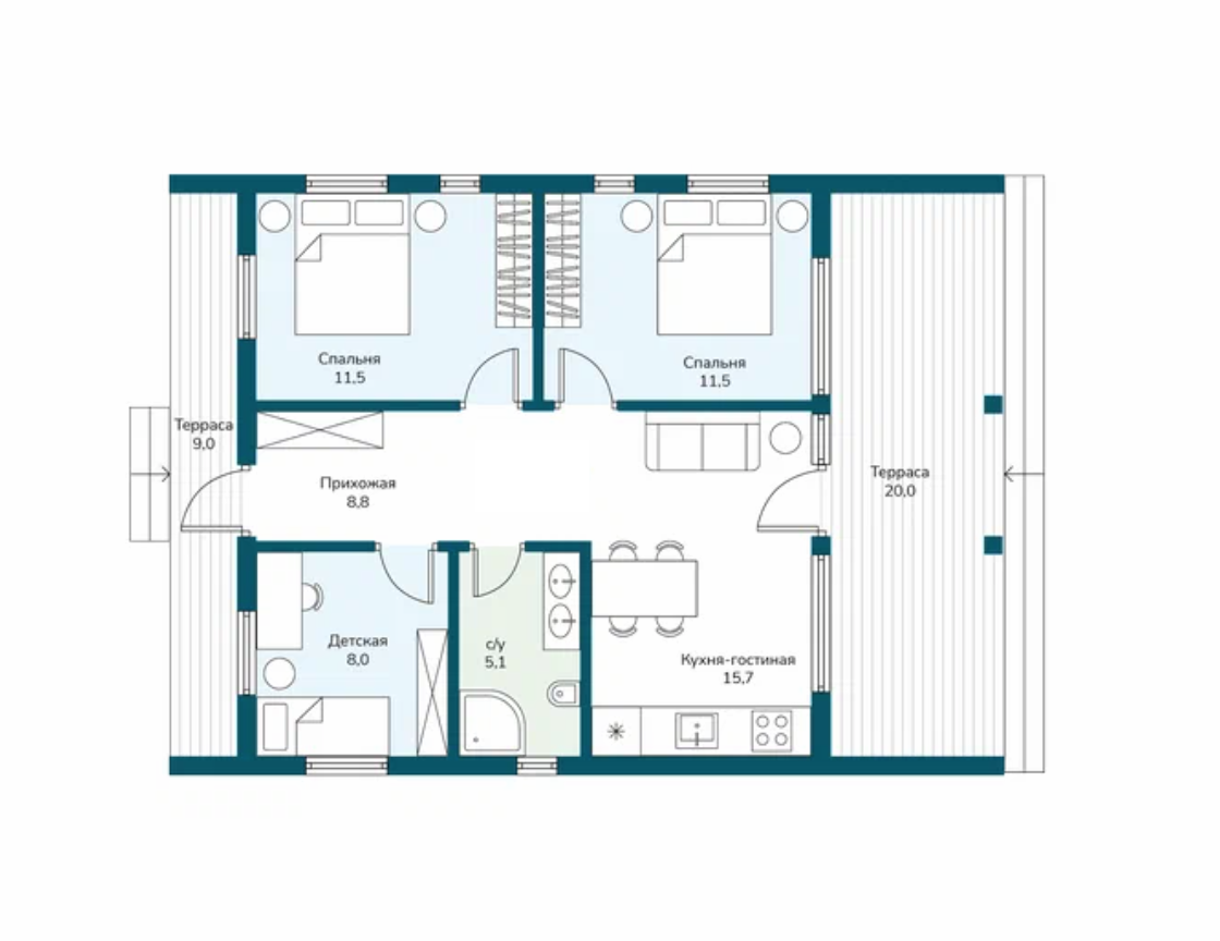 - 2 крытые террасы