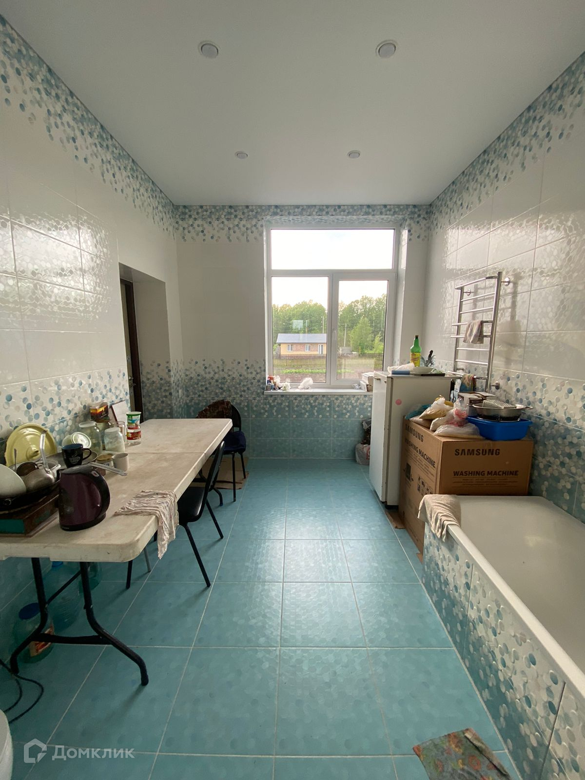 - 1-й этaж: большая ванная, комната, гocтинaя, кухня  с обеденной зоной.