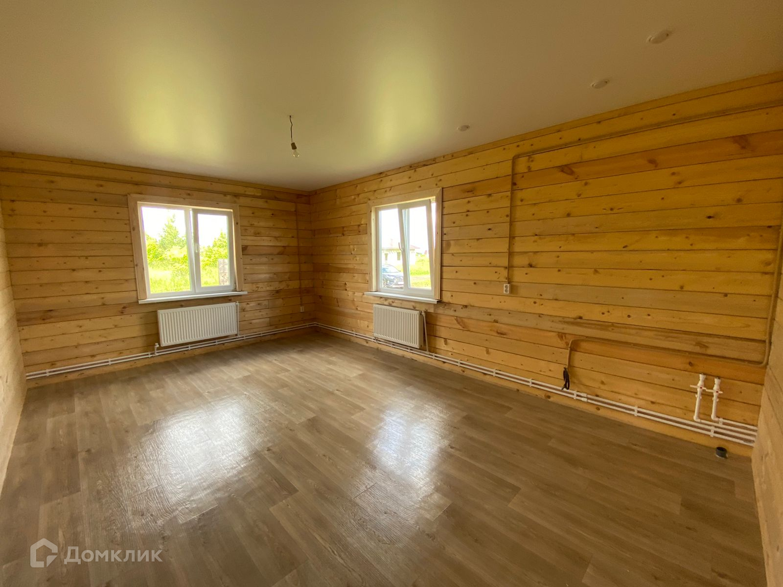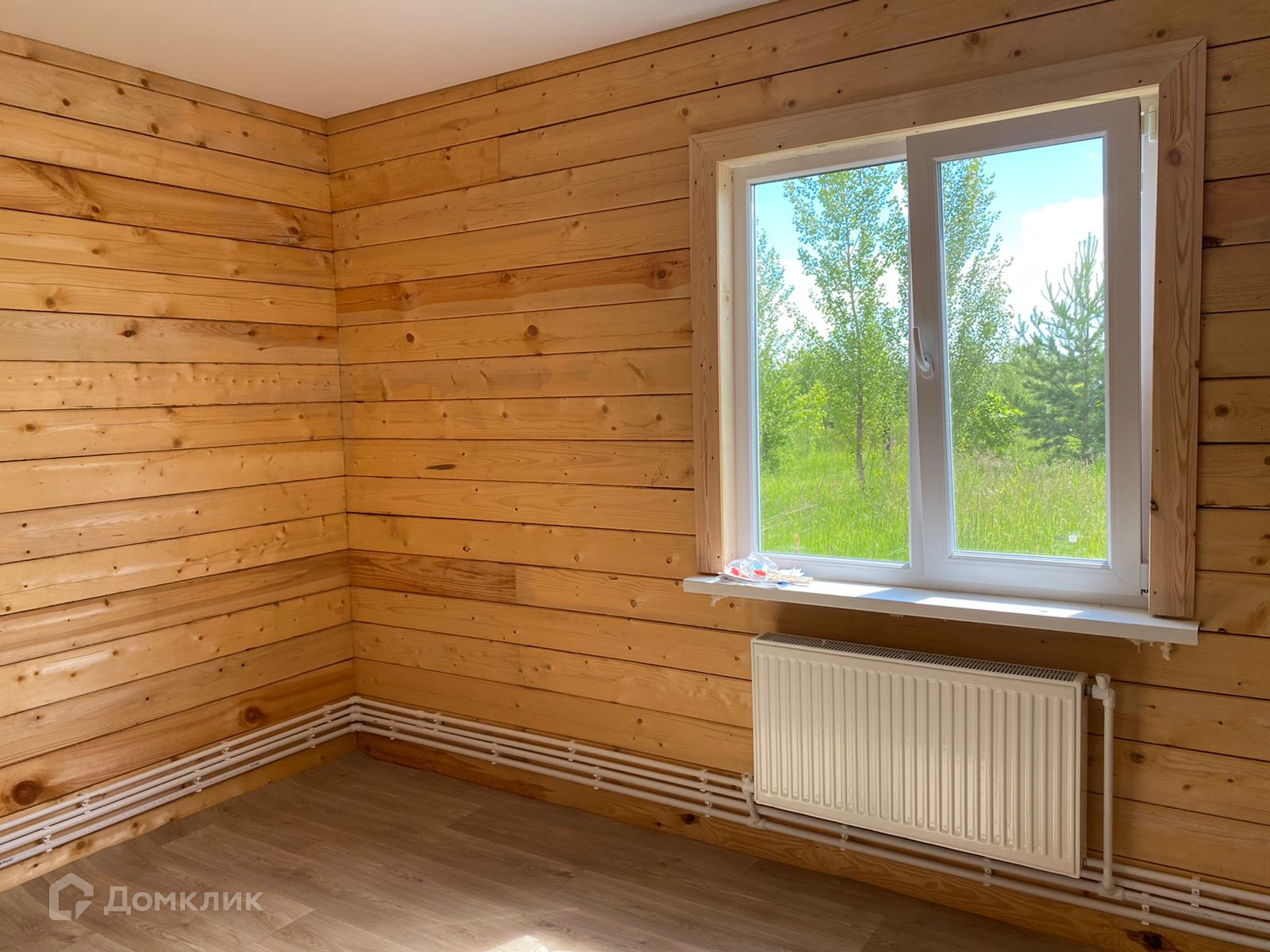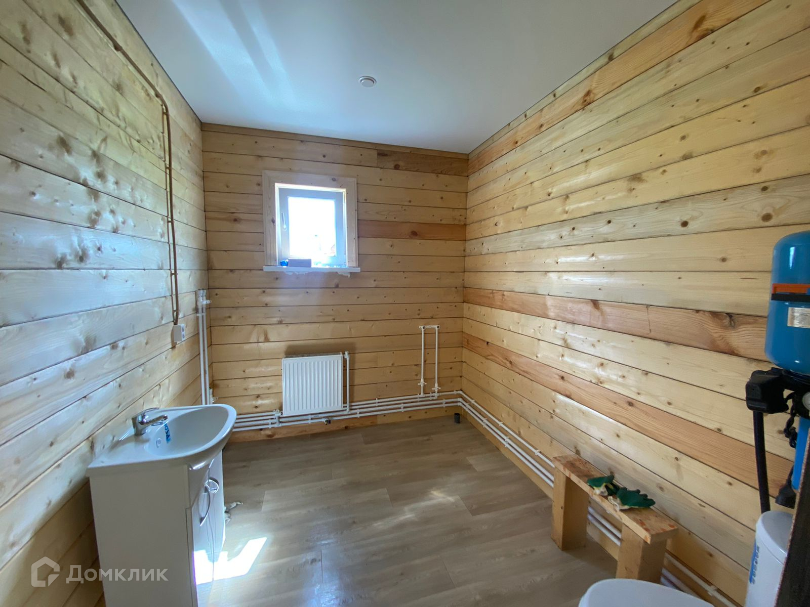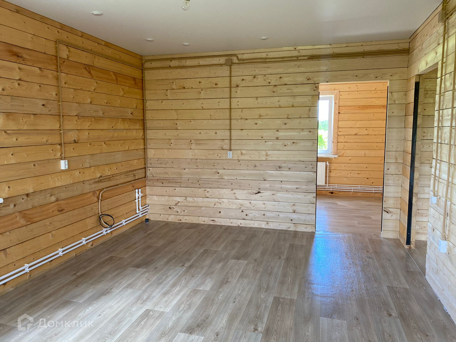 Потолок натяжной, стены строганный брус, на полу osb, линолеум.
