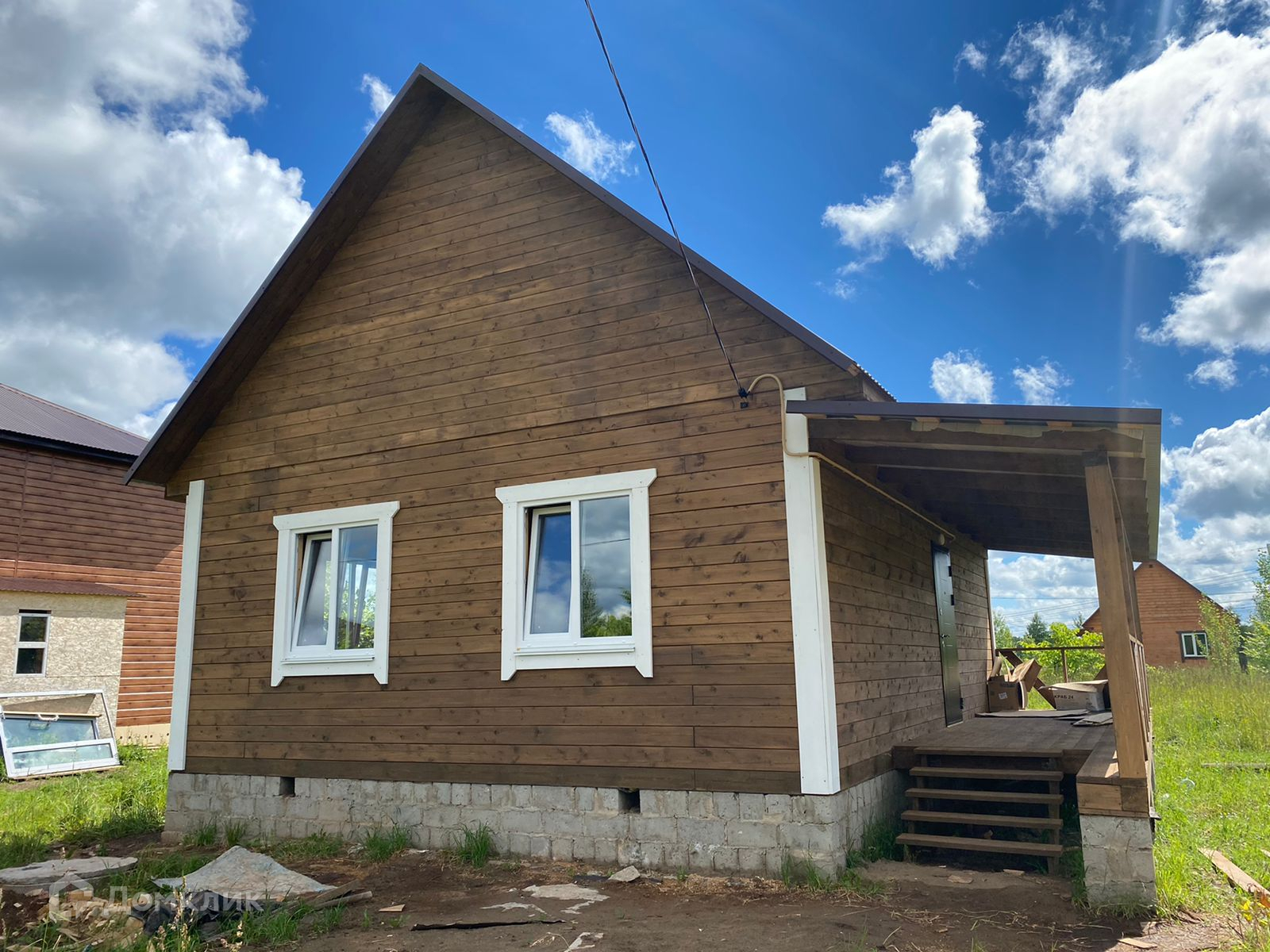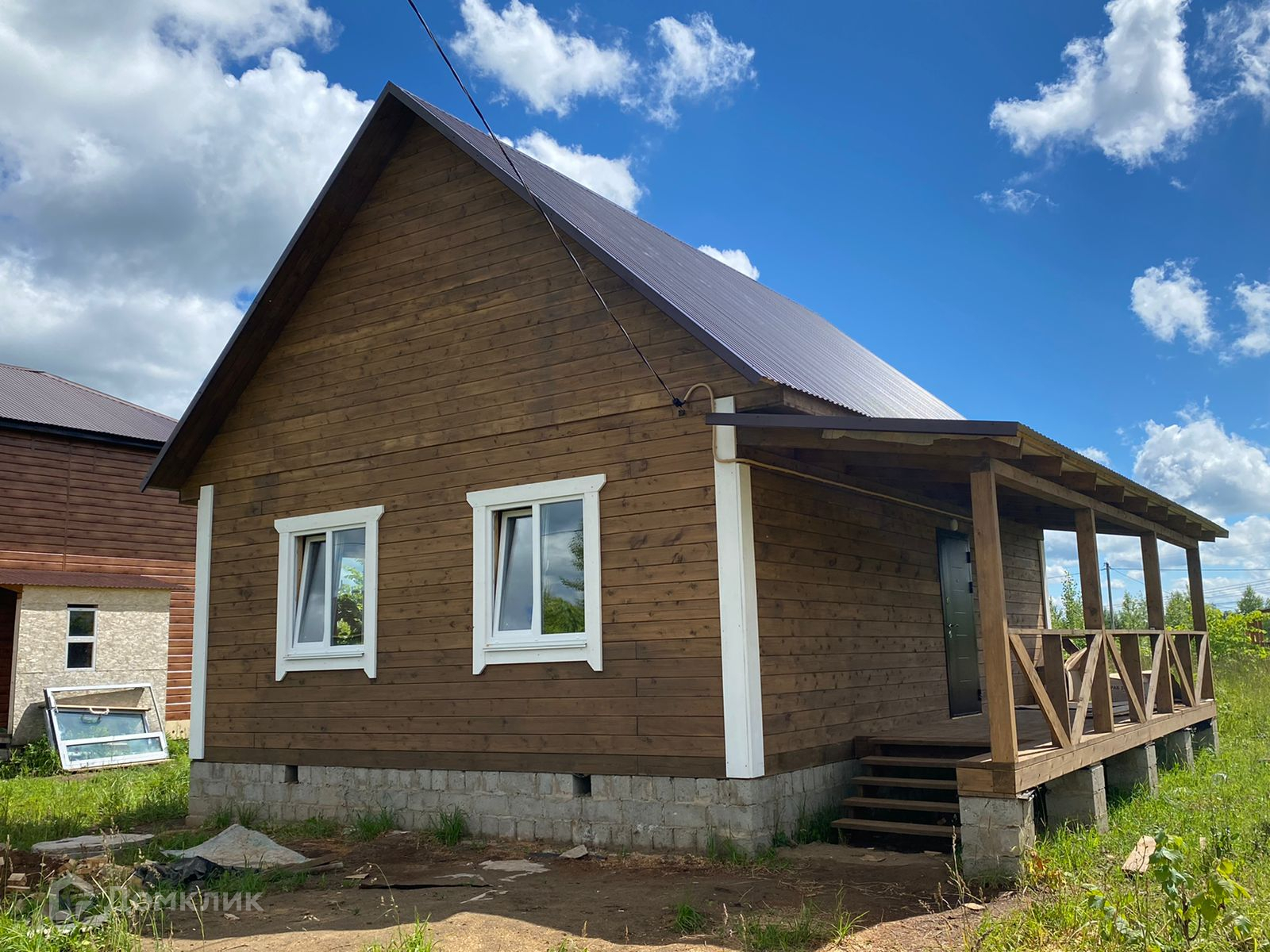 Планировка: веранда, прихожая,  2 спальные комнаты, кухня-гостинная, совмещенный санузел.