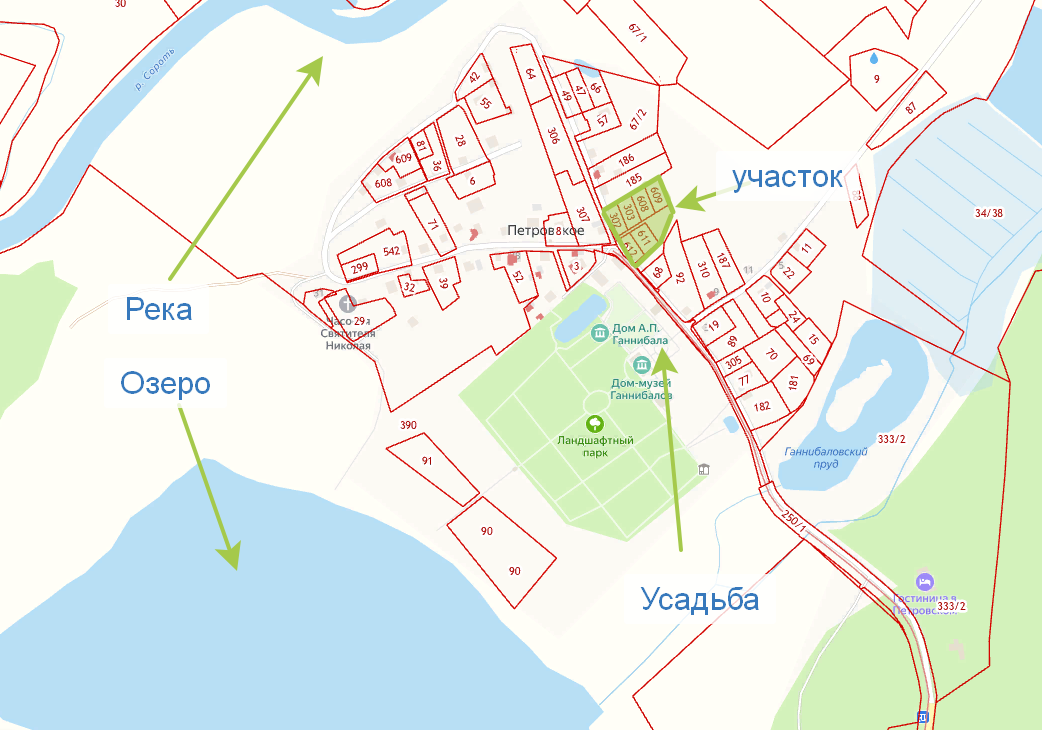 Деревня Петровское. Продаю земельные участки от 15 соток, расположенные в нескольких метрах от главного входа в парк усадьбы Ганнибала. Категория земель – земли поселений. Разрешенное использование – личное подсобное хозяйство. Общая территория 59 соток. Собственность. Нарежу любую площадь от 15 соток. Стоимость - 100 т.р. сотка.