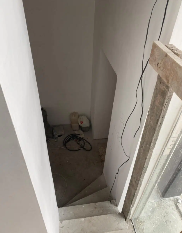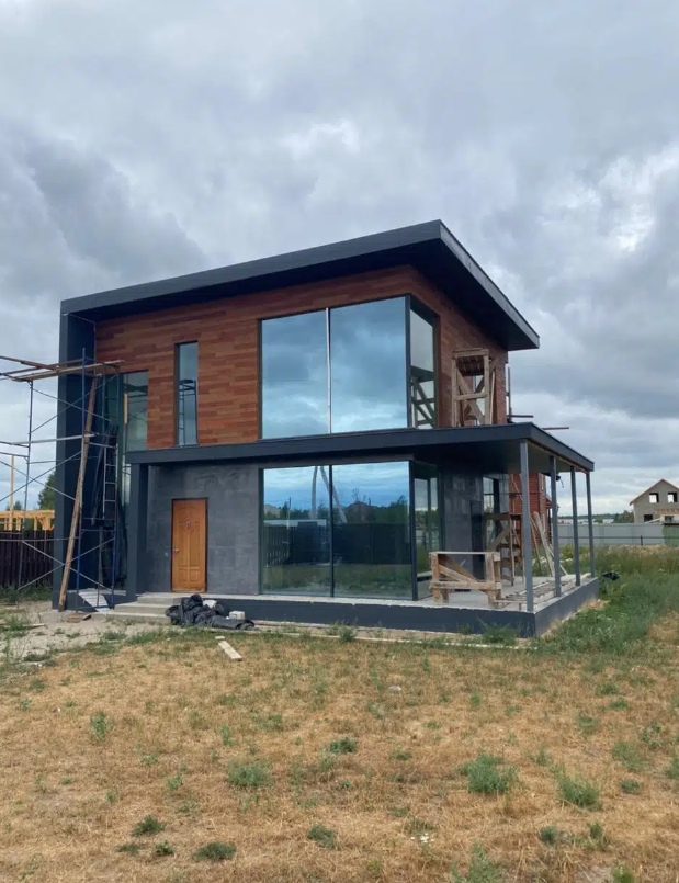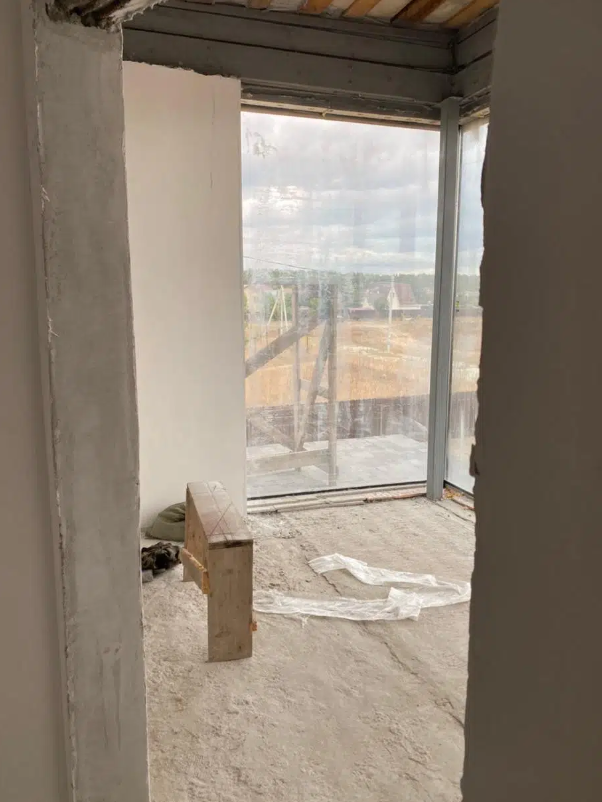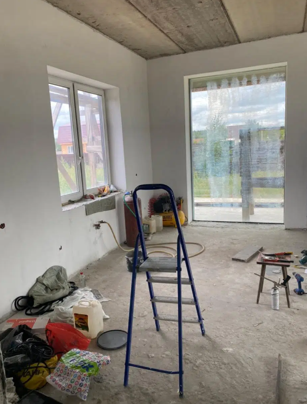 В доме выполнена предчистовая отделка. Грамотно разведена электрика. Водяные полы по всему первому этажу. Панорамные окна. Дом очень светлый. Участок расчищен, травы нет.