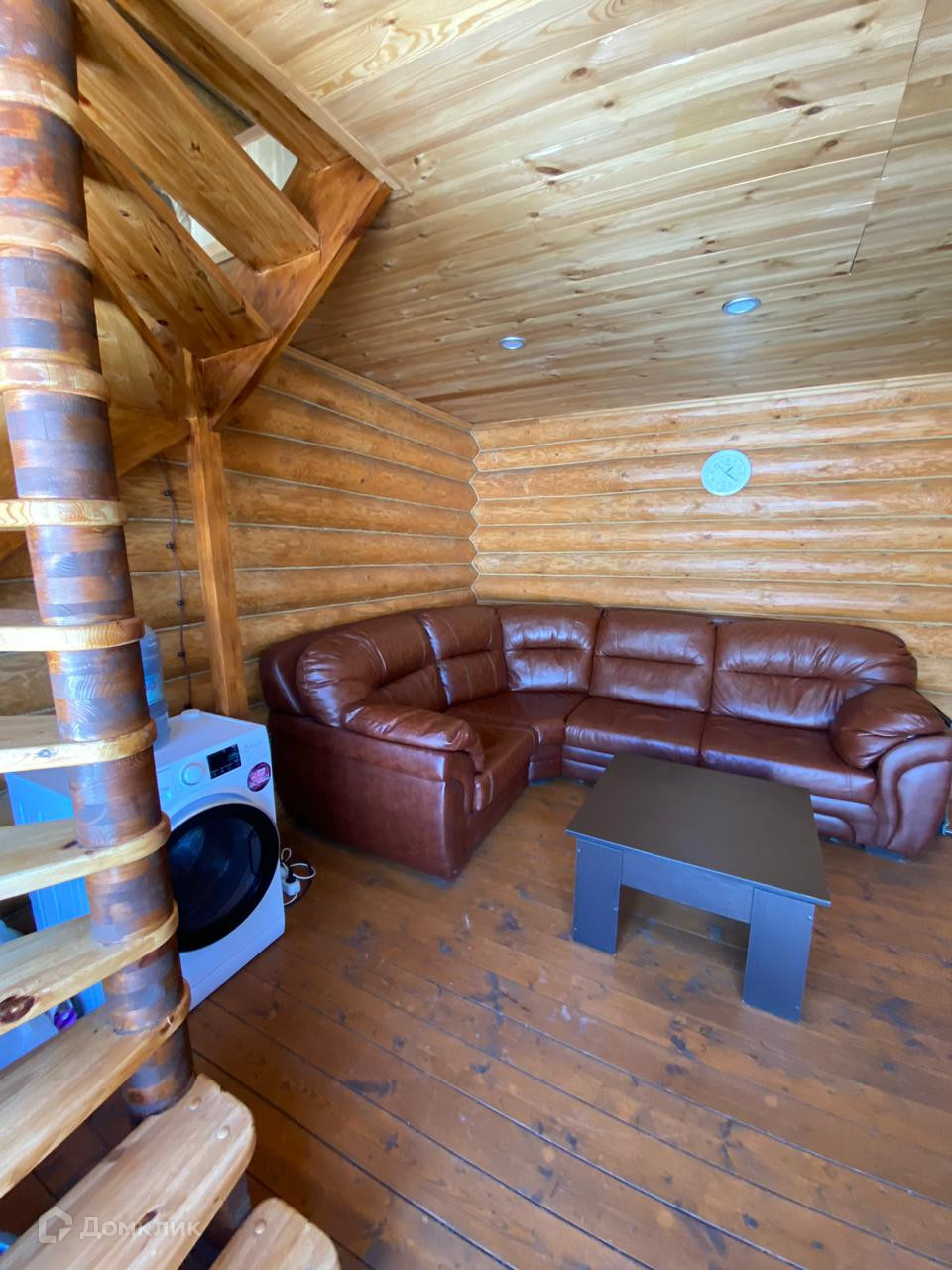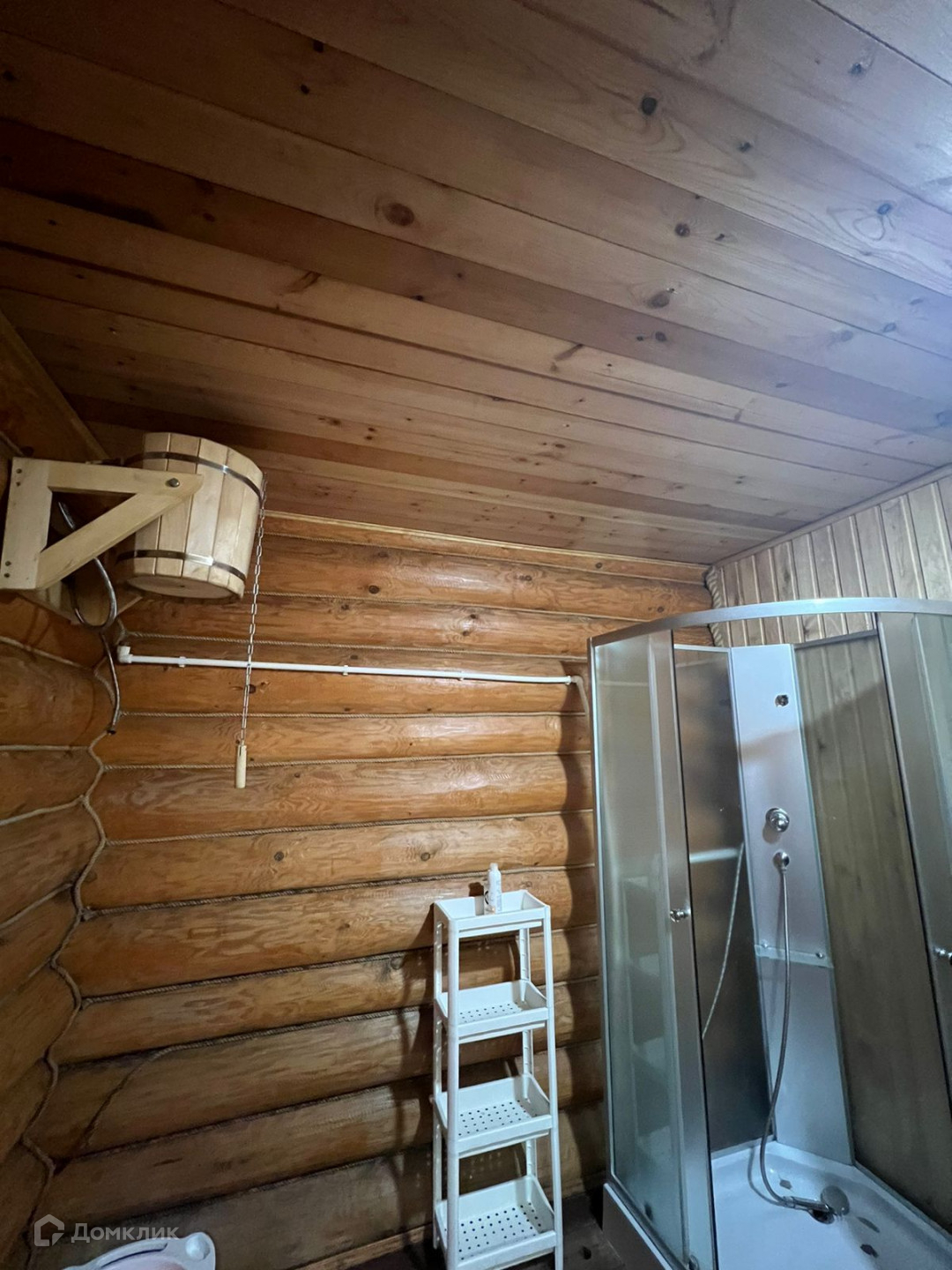 Также на участке есть двухэтажная баня. Материал стен сруб. Сделана основательно с полностью заведёнными коммуникациями. На первом этаже зона отдыха с мини-кухней и диваном, парилка, душевая, туалет. На втором этаже большая комната с большой кроватью, ТВ и кондиционером.