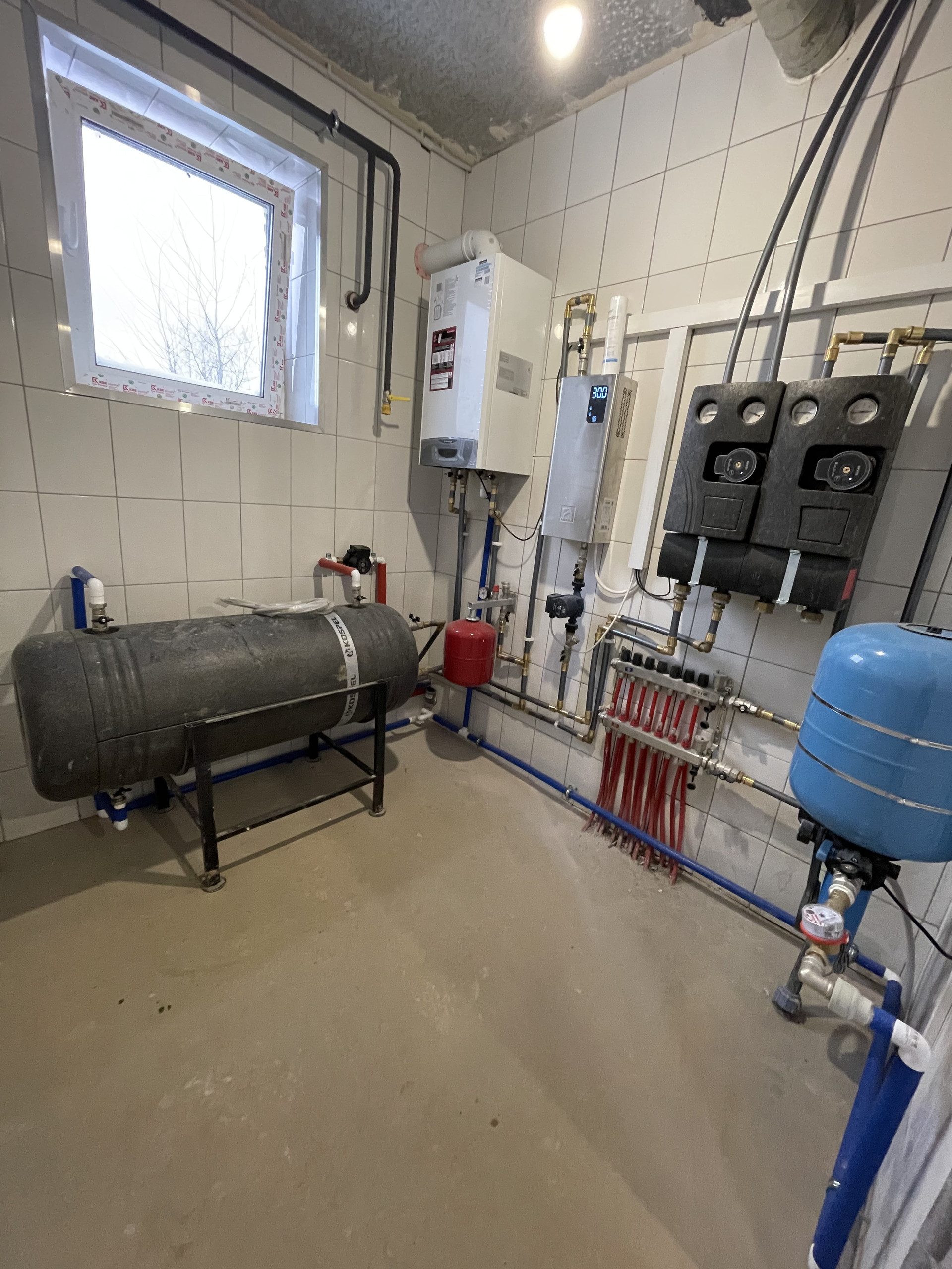 Штукатурка,стяжка,разведение инженерных сетей согласно проекта ( 160 Электро точек,тёплый пол - первый этаж,биметаллические радиаторы - второй этаж , газовый и резервный Электро котёл , бойлер косвенного нагрева)