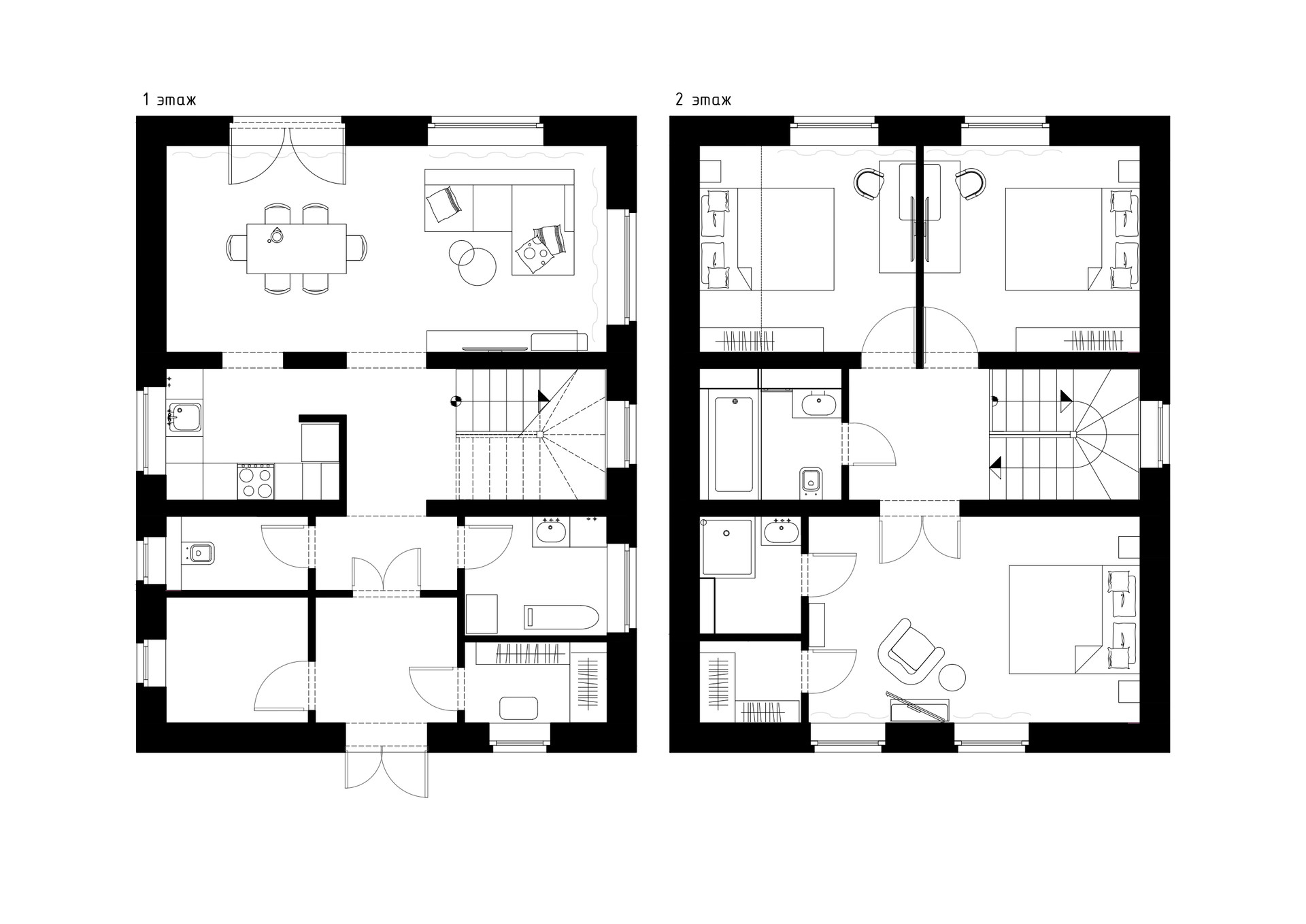 1 этаж. Прихожая с гардеробом, просторная кухня-столовая с гостинной и выходом на террасу, гостевой сан.узел, прачечная/кабинет, котельная.
