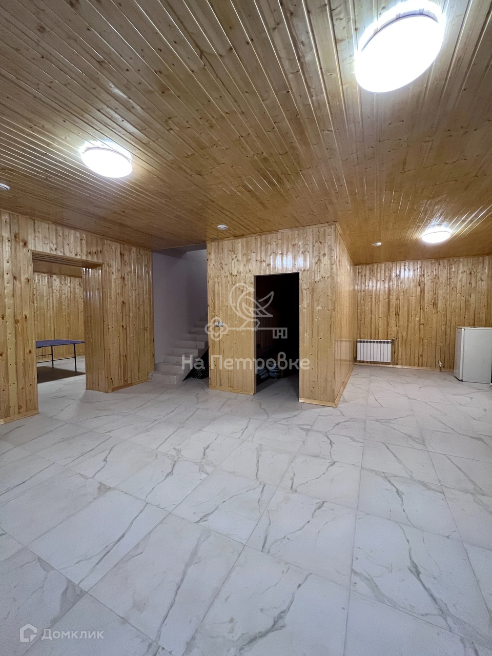 3-х этажный дом + подвальное помещение помещение 100 кв.м., где оборудован спортивный зал с теннисным столом и боксерской грушей, для сауны не хватает лишь электропечи.