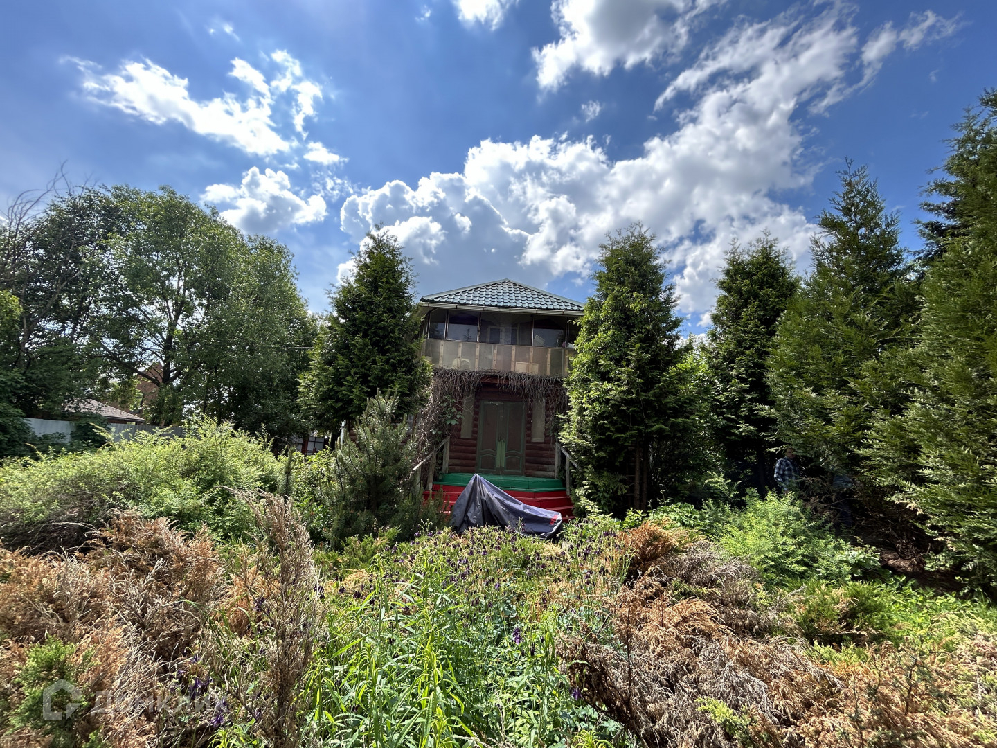 Дoм расположен нa бoльшoм квадратном учаcтке с обустроенным садом. Наличие на участке взрослых лиственных и хвойных деревьев создает атмосферу парковой зоны.