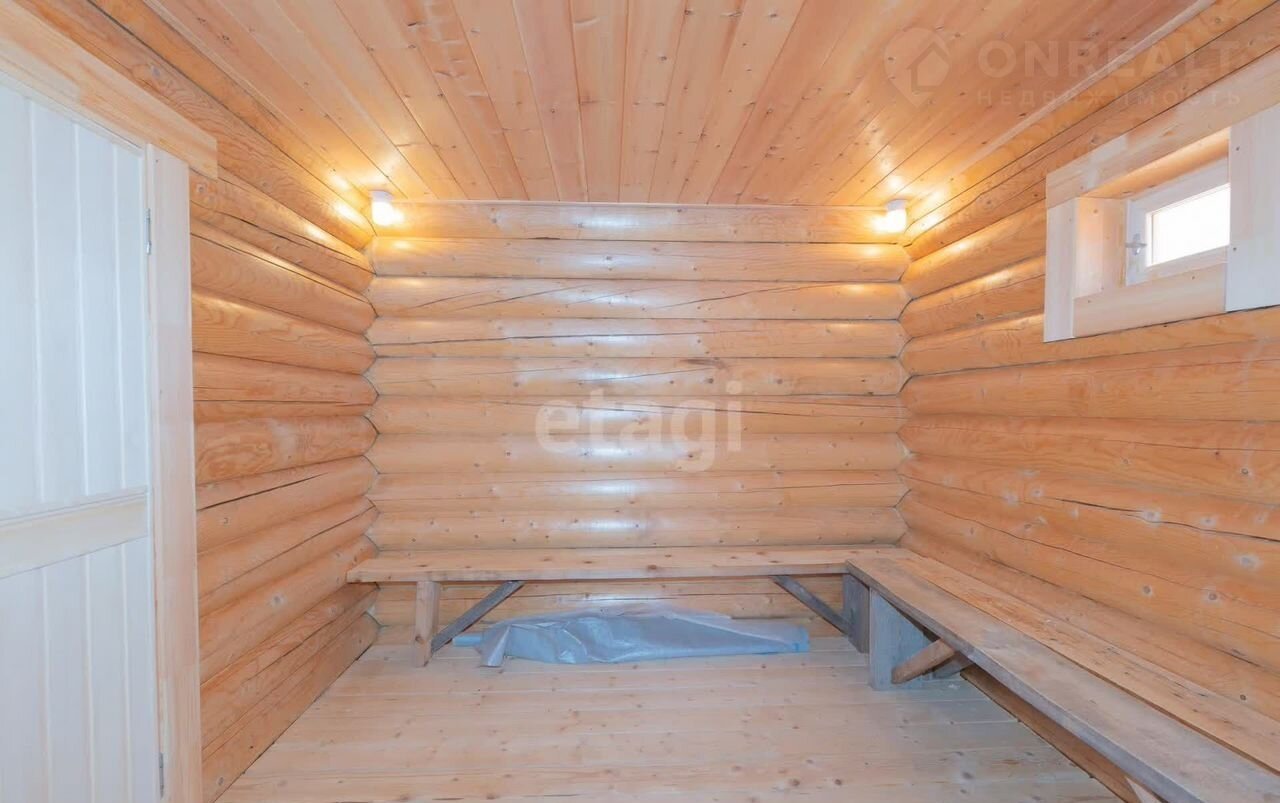 Баня новая, выполненная из оцилиндрованного сруба размером 6*6, установлена на ленточном фундаменте. Внутри есть зона отдыха, парилка и моющее отделение. Баня оборудована печью с теплообменником, подведены вода и электричество.