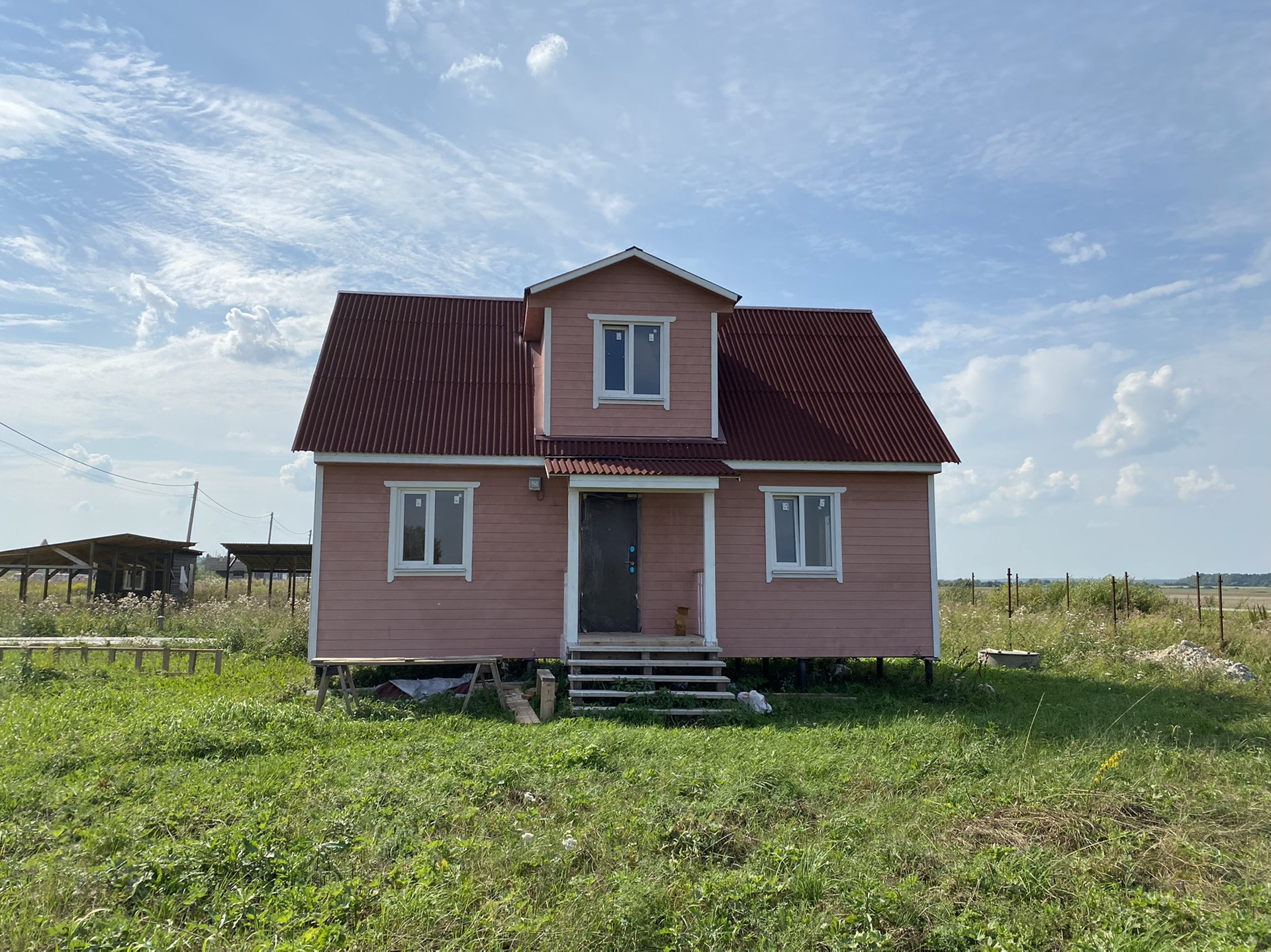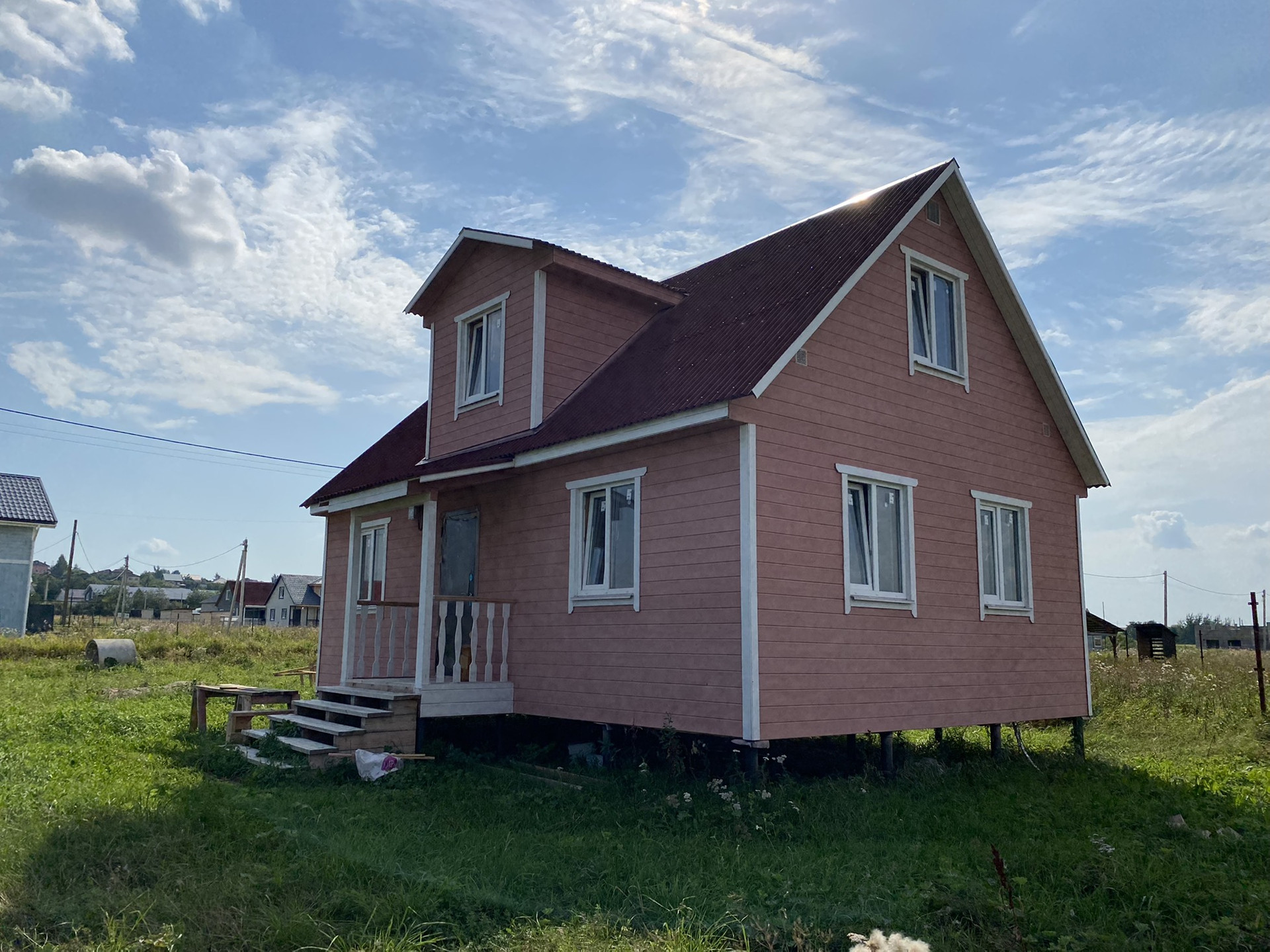 Каркасный 2 этажный дом , фундамент -сваи, внутренняя отделка вагонка,