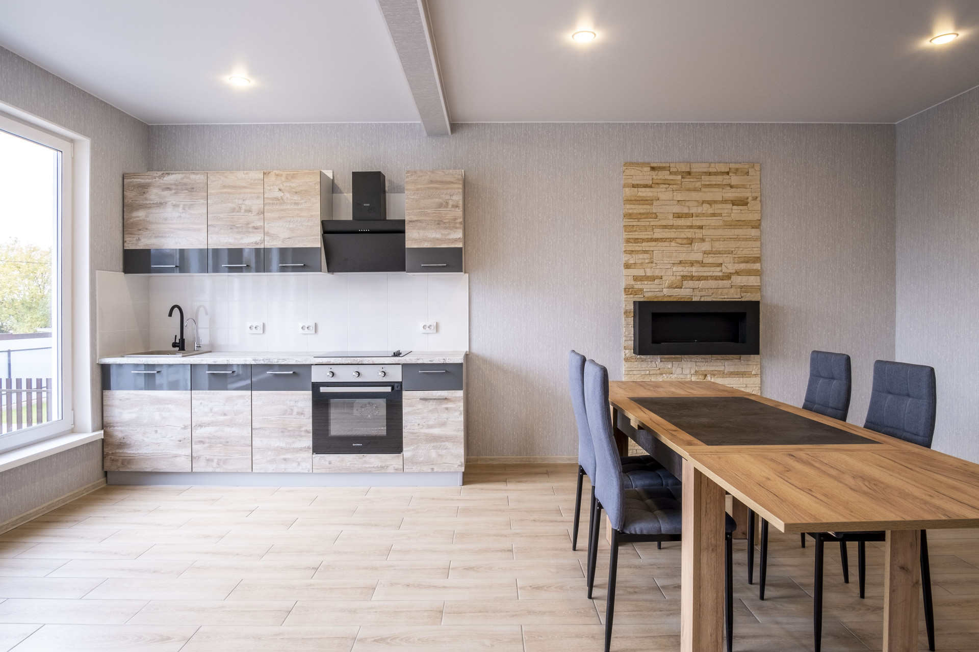 • полностью оборудованная кухня с встроенной варочной панелью и встроенным духовым шкафом