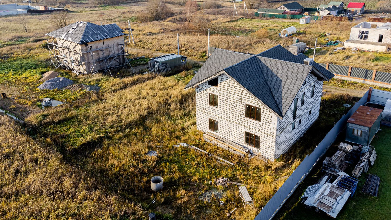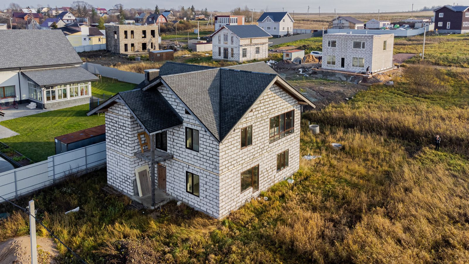 Со второго этажа панорамный вид, застройка поселка свободная, дома новые, нет скученности домов и участков.