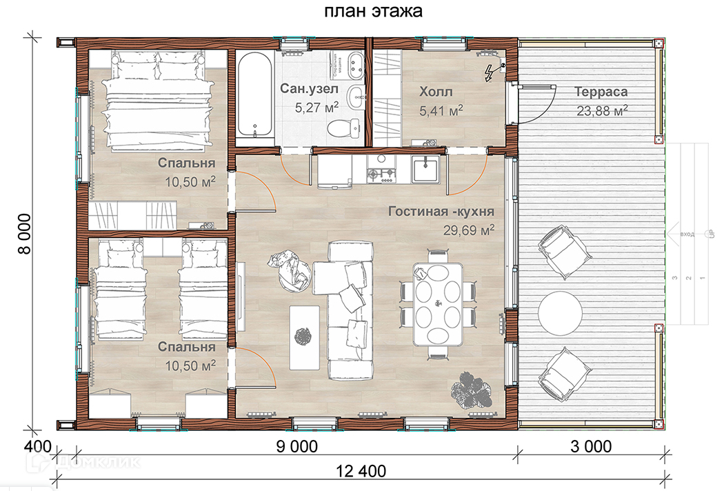 Терасса площадь. более чем 24 м2 будет прекрасным дополнением для комфортного проживания в доме. Отличный аналог квартиры в загородном исполнении с собственным участком земли.