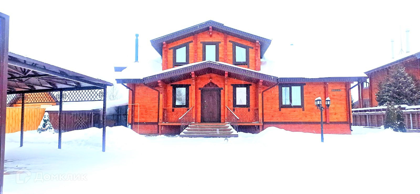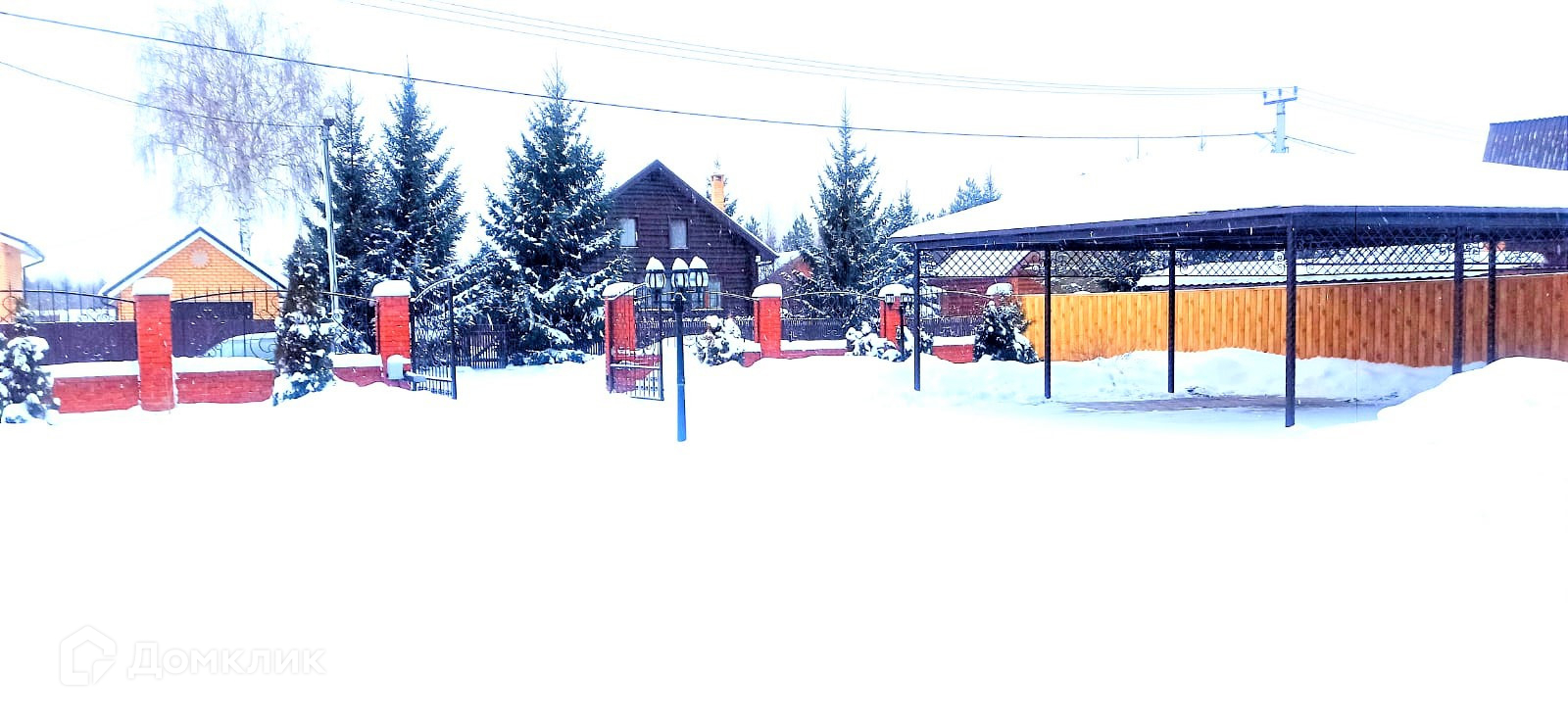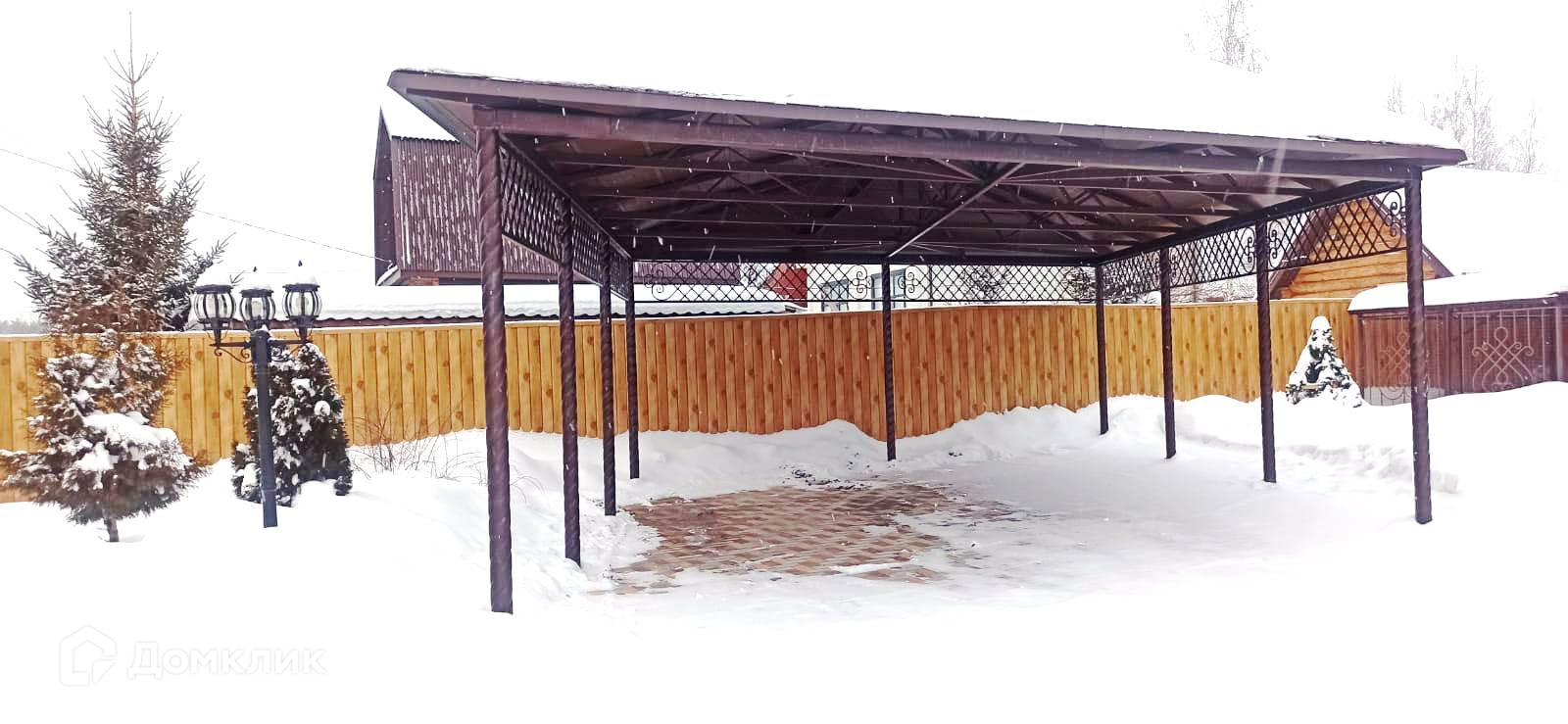 Двор огорожен, автоматические ворота, навес для машин.