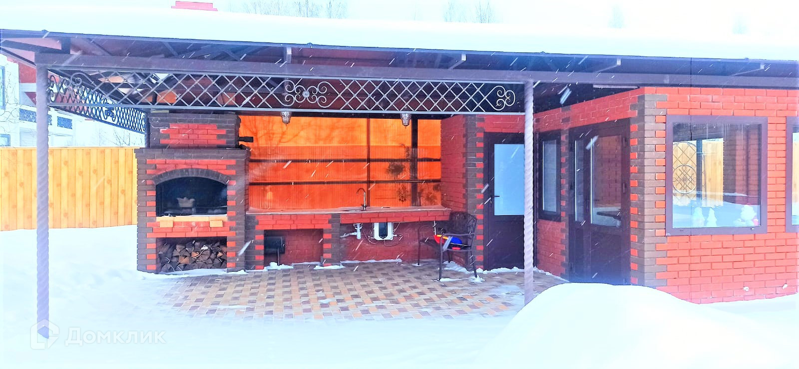 На заднем дворе построена кирпичная мангальная зона с беседкой и своим санузлом.