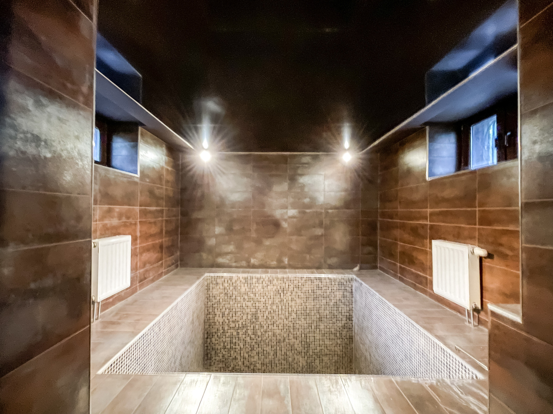На цокольном этаже расположена сауна, бассейн, котельная, две спальни и кладовая для хранения.