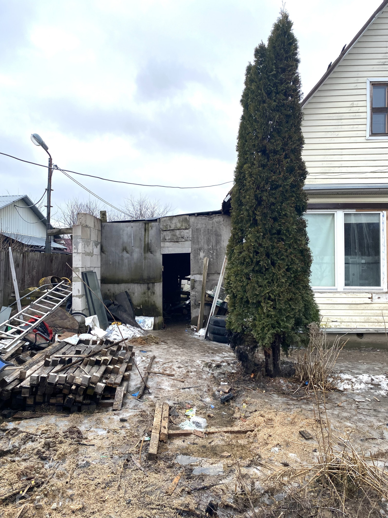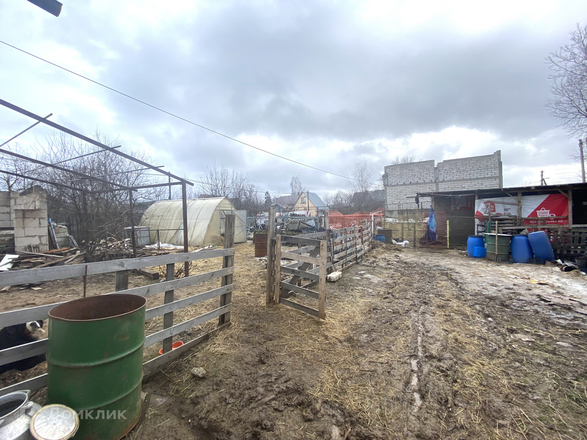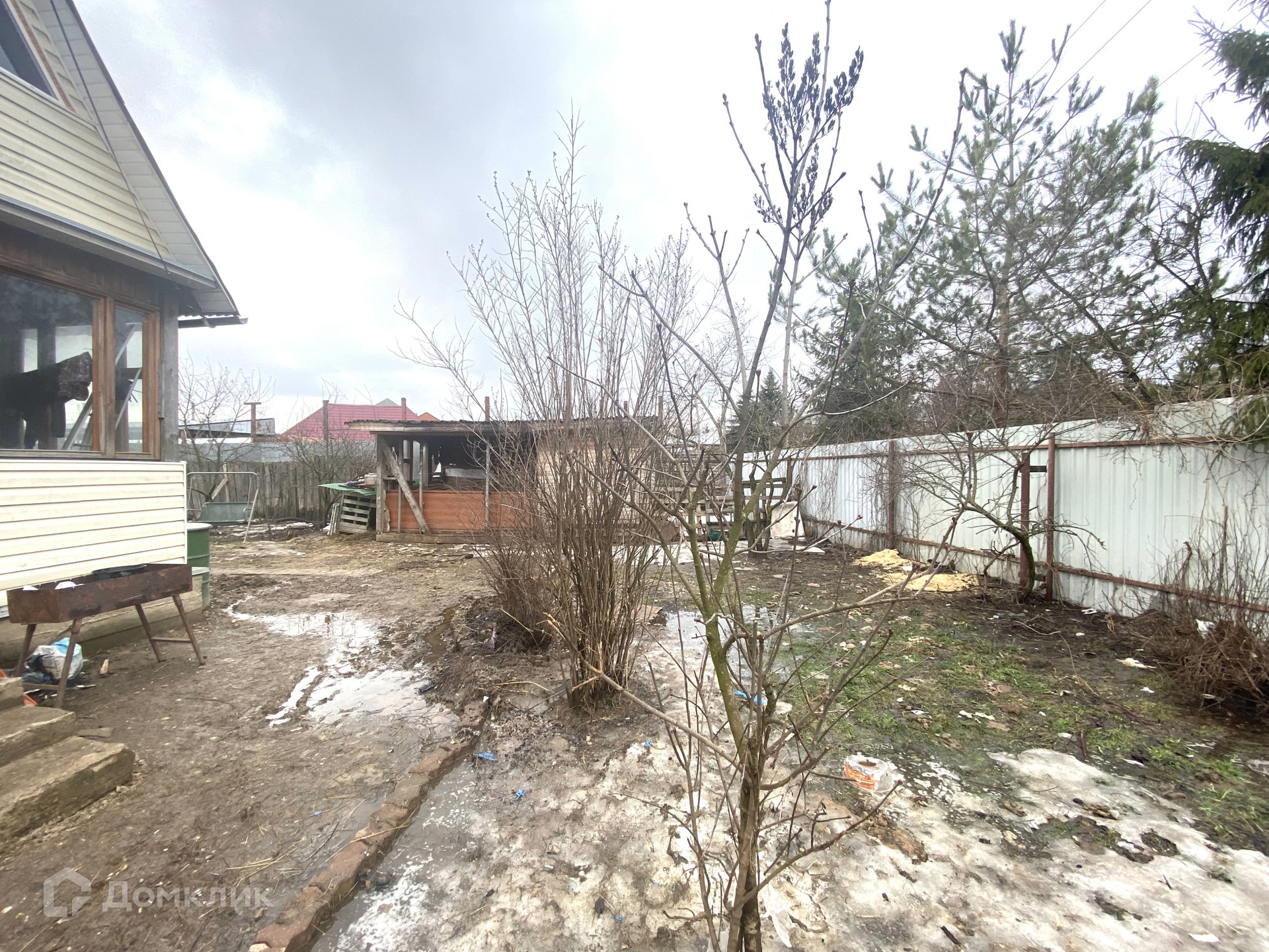 На территории есть парковочное место на две машины. Во дворе находится бытовка для хранения различных вещей или инструментов, также теплица для посадки рассады. Посажены плодовые кустарники и деревья.
