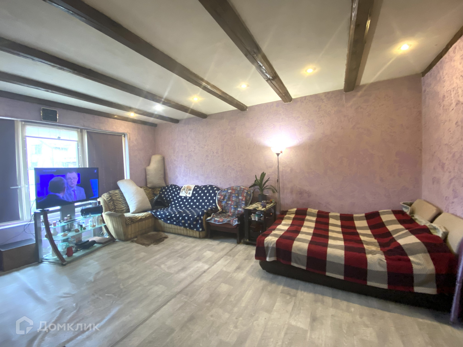В доме продуманная планировка, на 1 этаже расположено: кухня, гостиная с камином, просторная спальня, ванная комната; на 2 этаже: две комнаты, одна их которых с выходом на балкон.