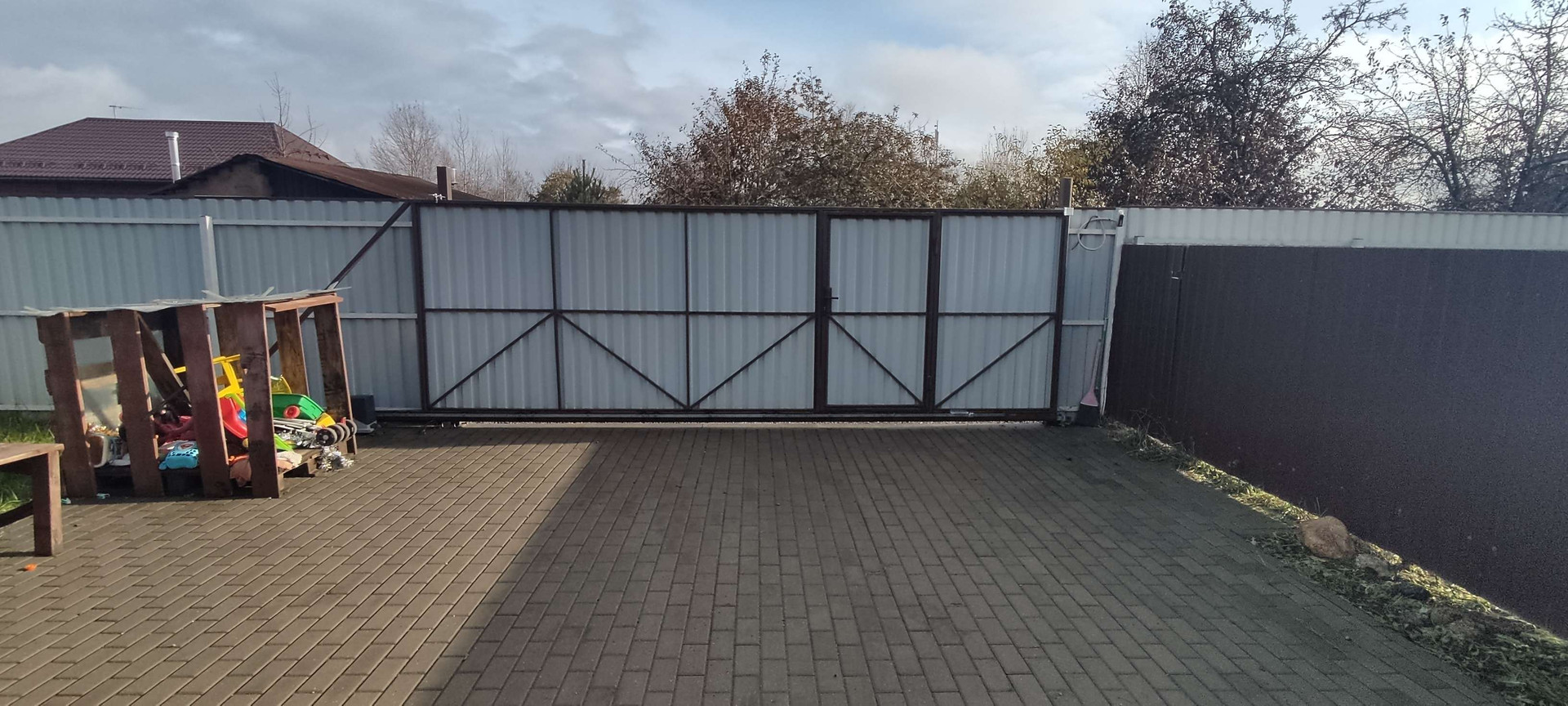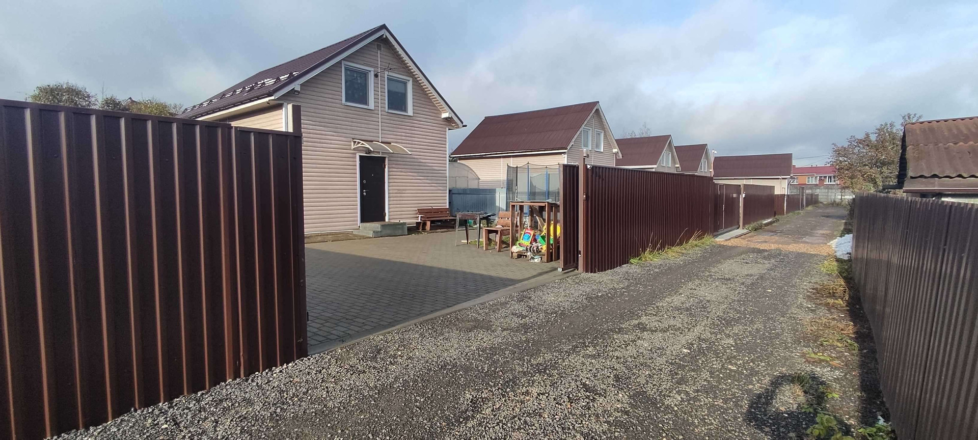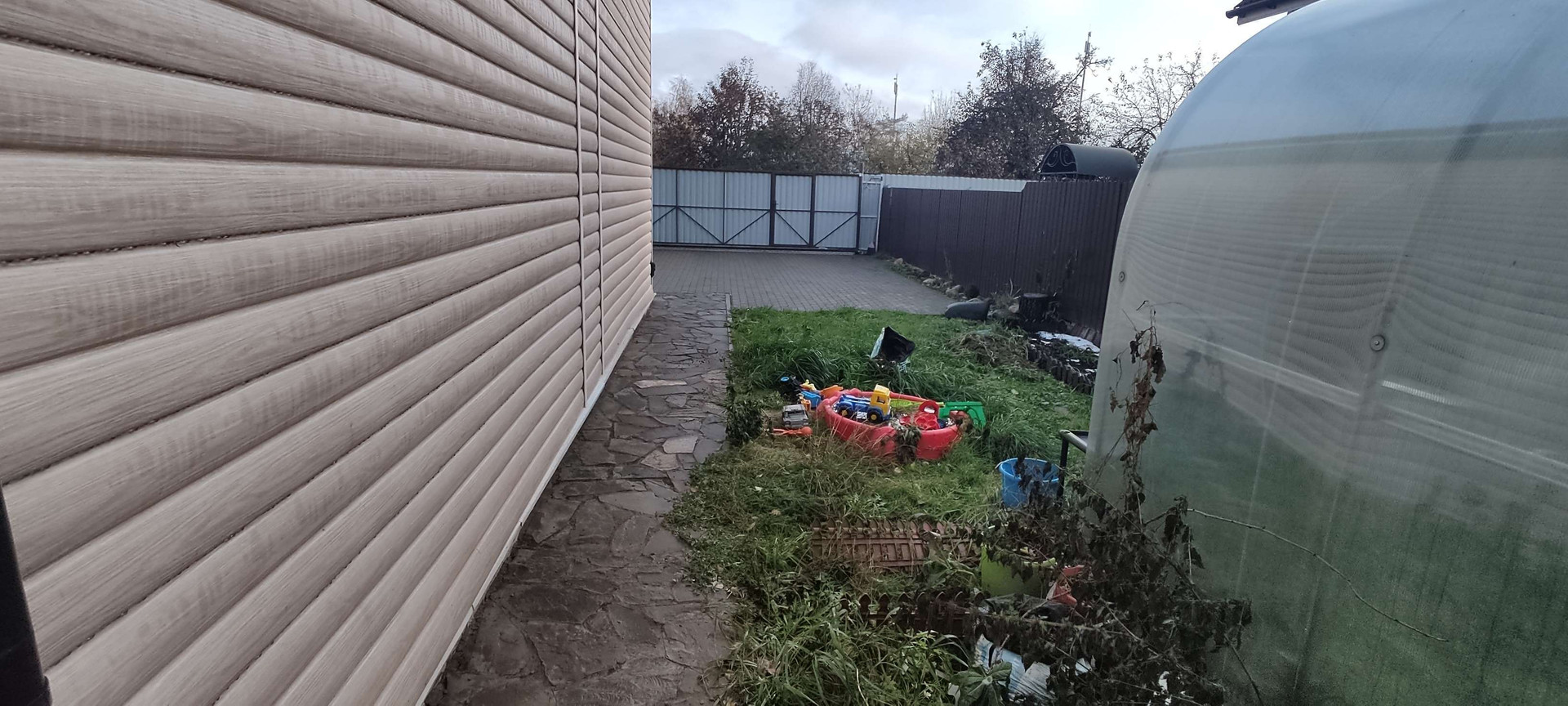 На участке сделана отмостка по периметру дома, брусчатка для авто и остального, ворота откатные с мотором, теплица 3*5, сарай 1*1.
