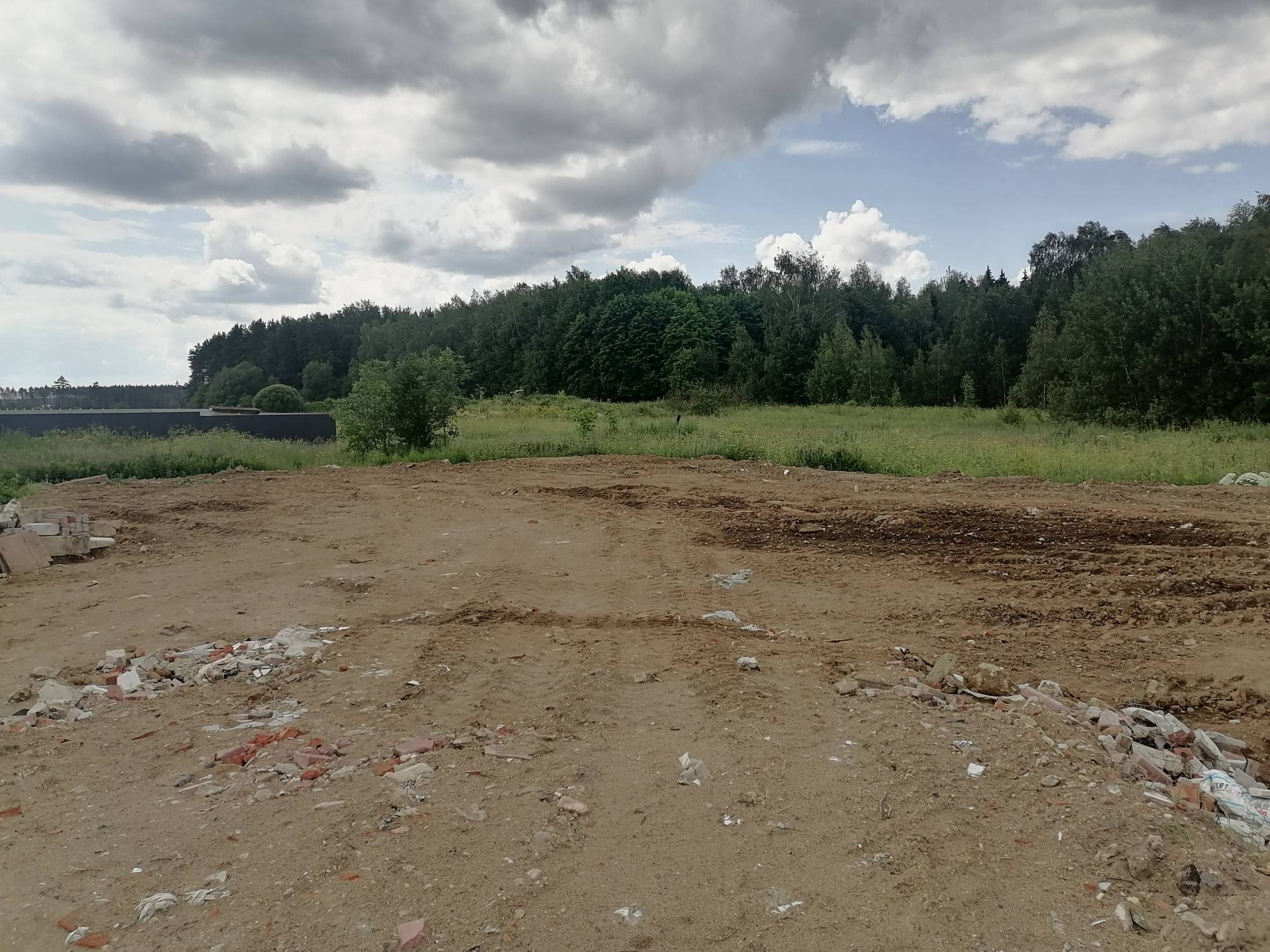 Участок отсыпан по планеровке. Дорога и площадка перед участком выложена шпали. Свет подведен. Не поставлен счётчик. ИЖС